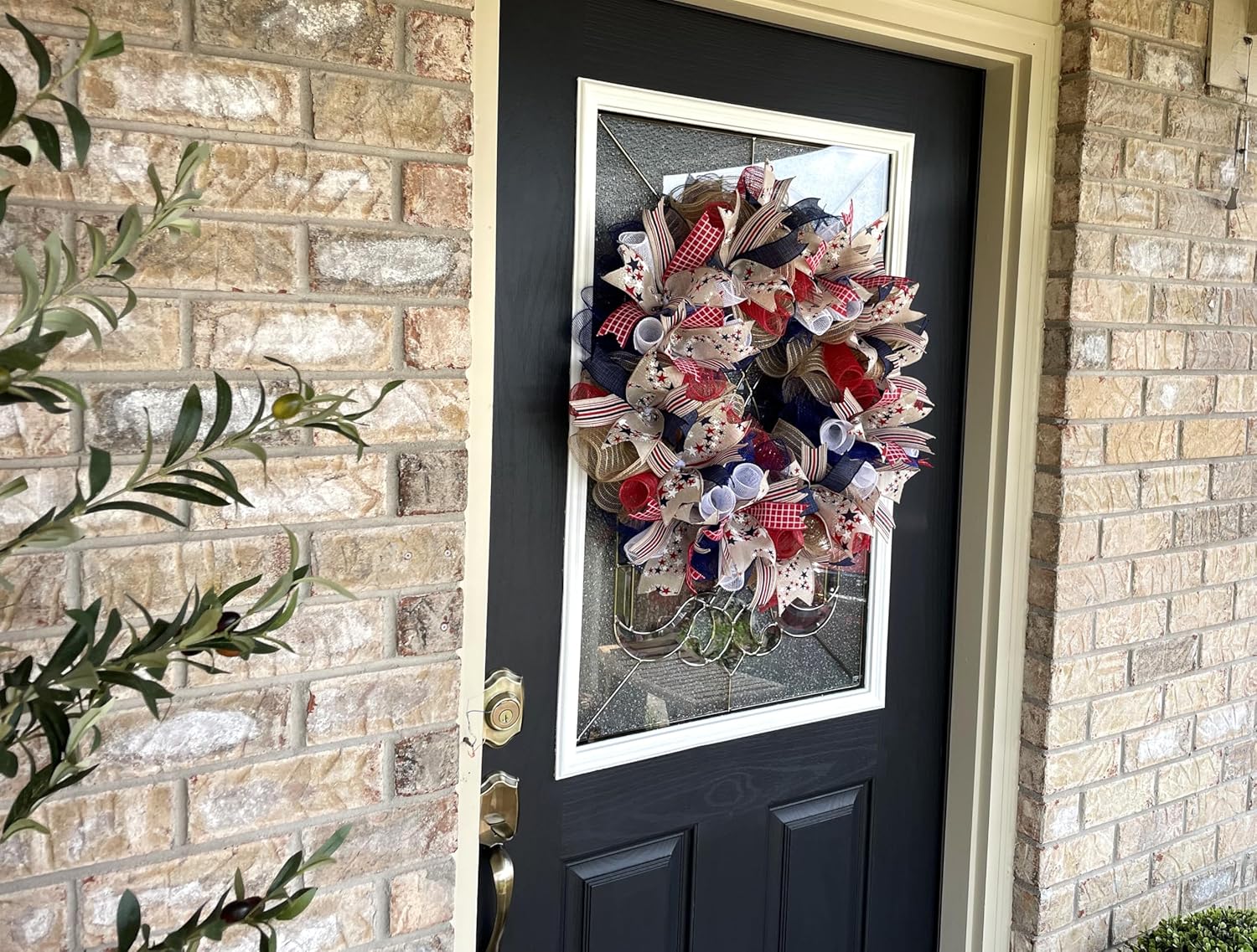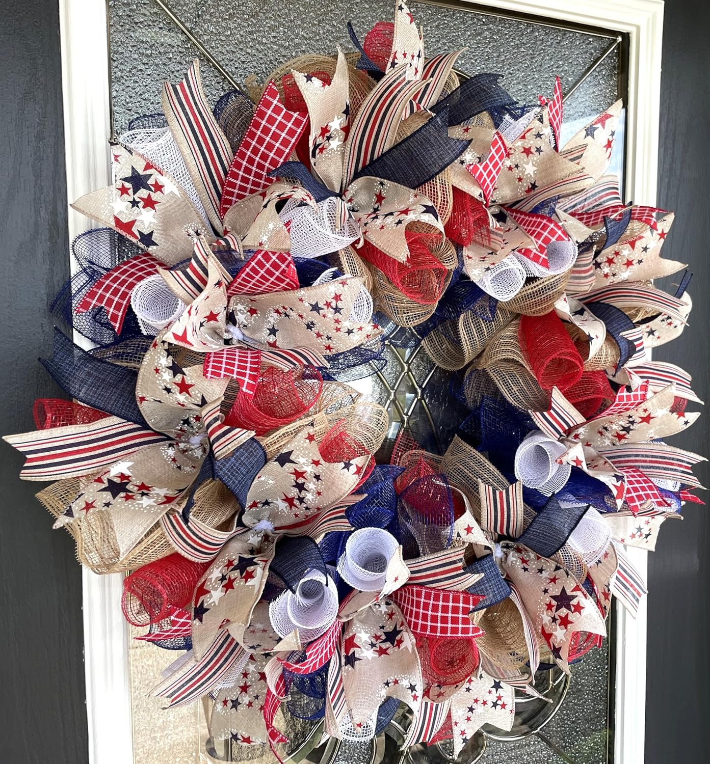 Patriotic 4th of July Country Stars Deco Mesh Front Door Wreath, Home Decor, Front Door Wall Entryway, Patio Porch Garden, Living Room Bedroom Wall Decoration, Handmade Handcrafted