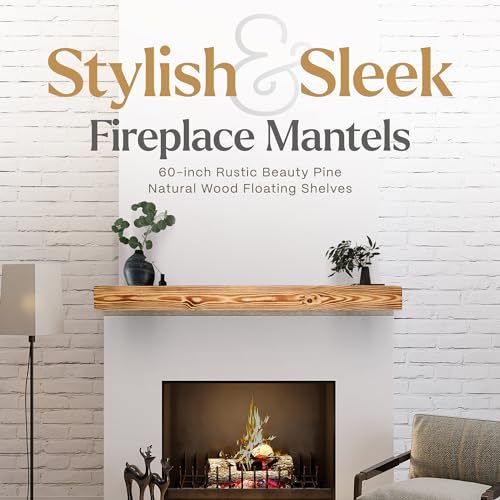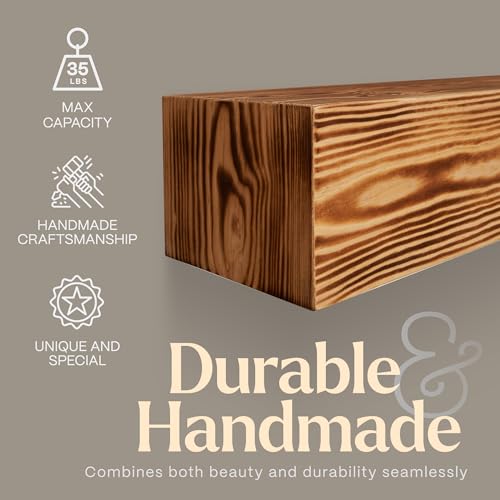 Fireplace Mantel, Natural Wood Floating Shelves, Easy to Install Rustic Shelving, Water-Based Paint, 60 Inch Floating Shelf, Shou Sugi Ban (Wood Burning Art) - Luxe Shelf Group
