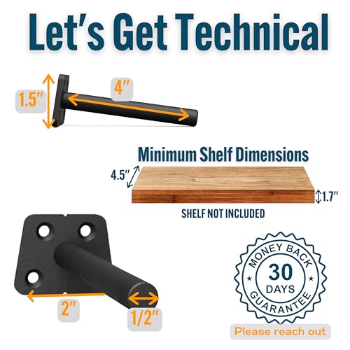 EVALD Heavy Duty Floating Shelf Bracket | 6-Inch Floating Mantel Mount, Blind Shelf Supports, and Anchors | Floating Shelf Hardware for Home and Office Decor | Fireplace Mantel Brackets (4 Pack)