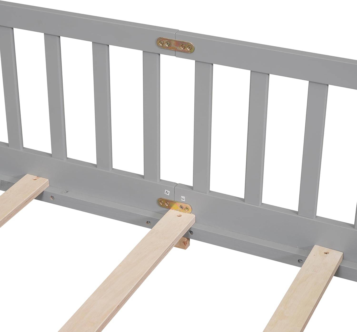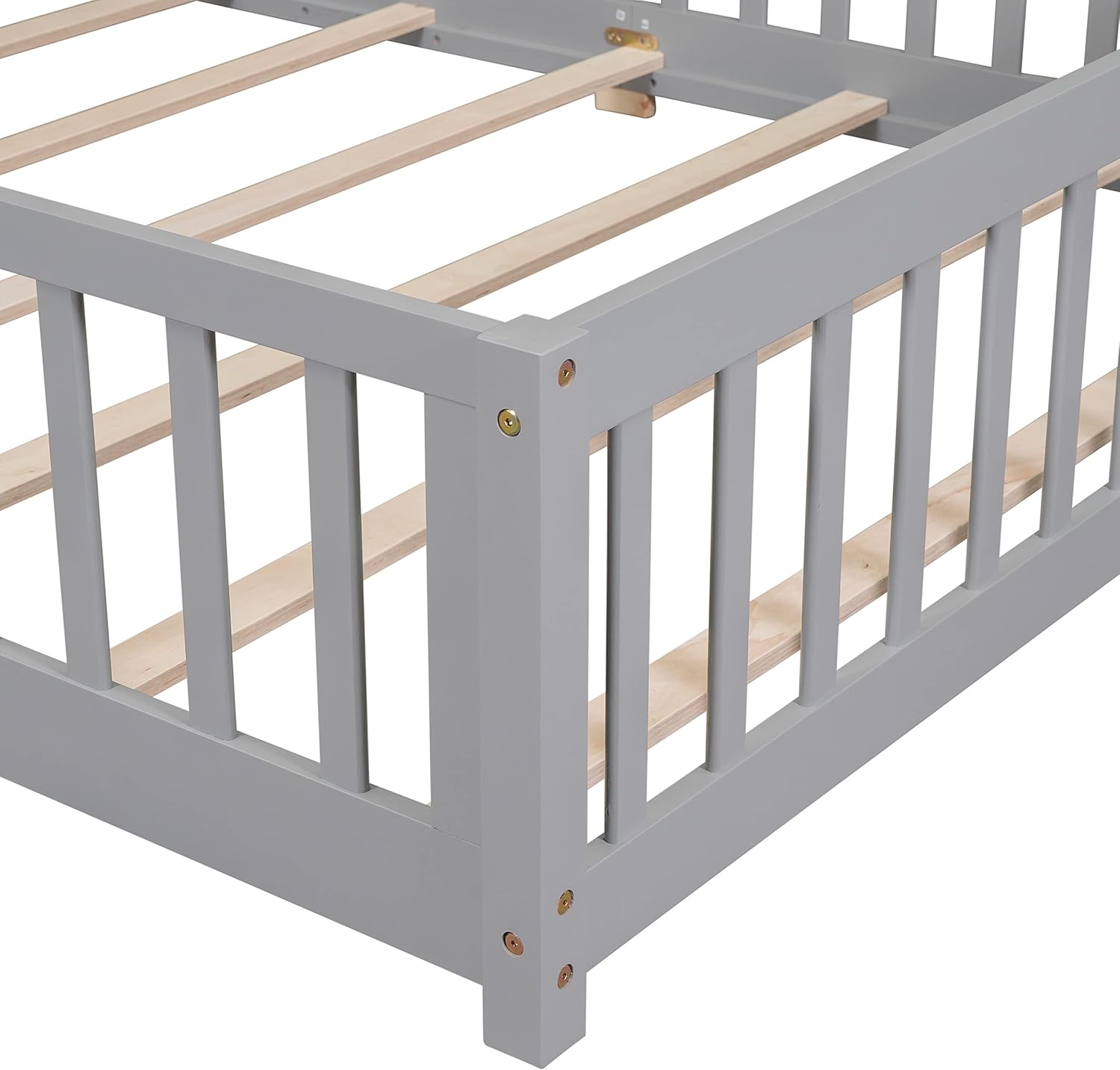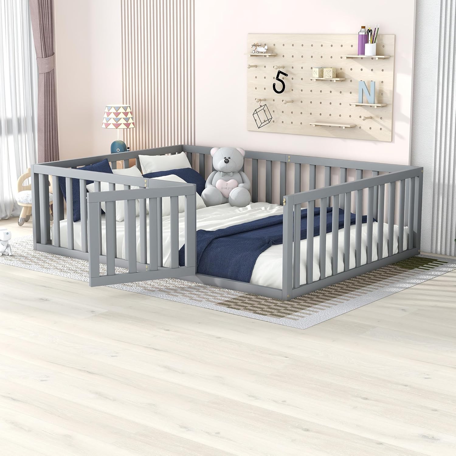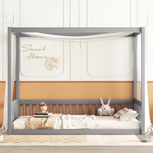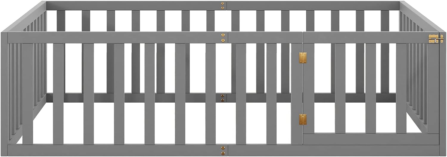Harper & Bright Designs Full Floor Bed for Kids, Montessori Bed Frame with Guardrails and Door, Wooden Floor Full Bed for Kids, Boys Girls (Full Size, Gray)
