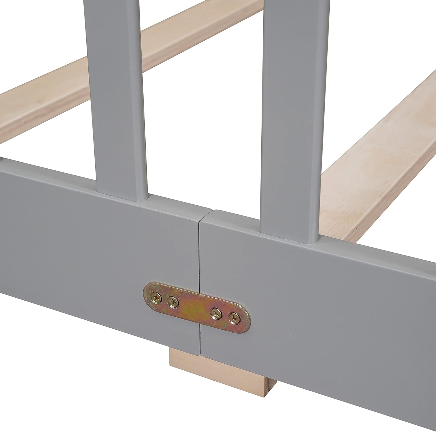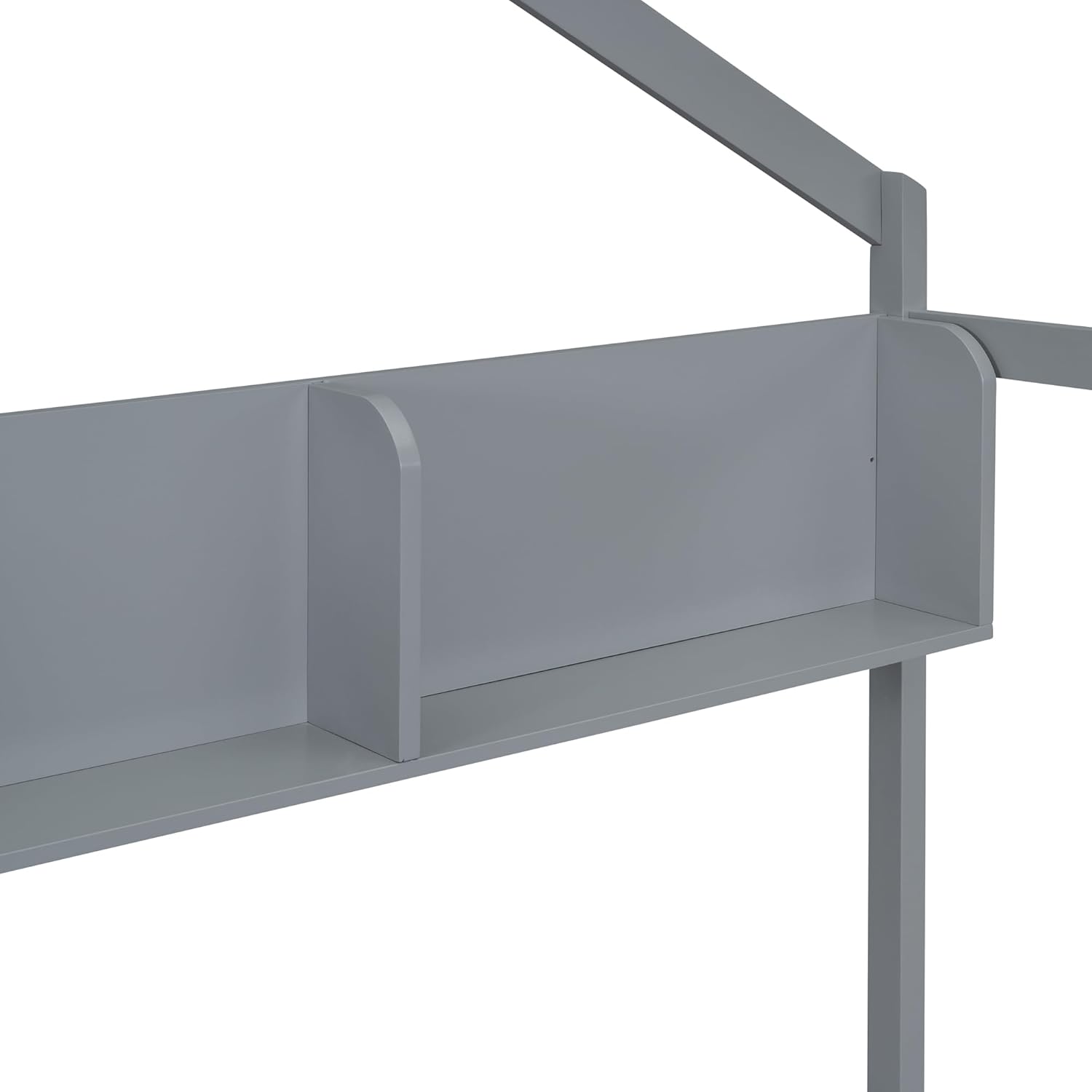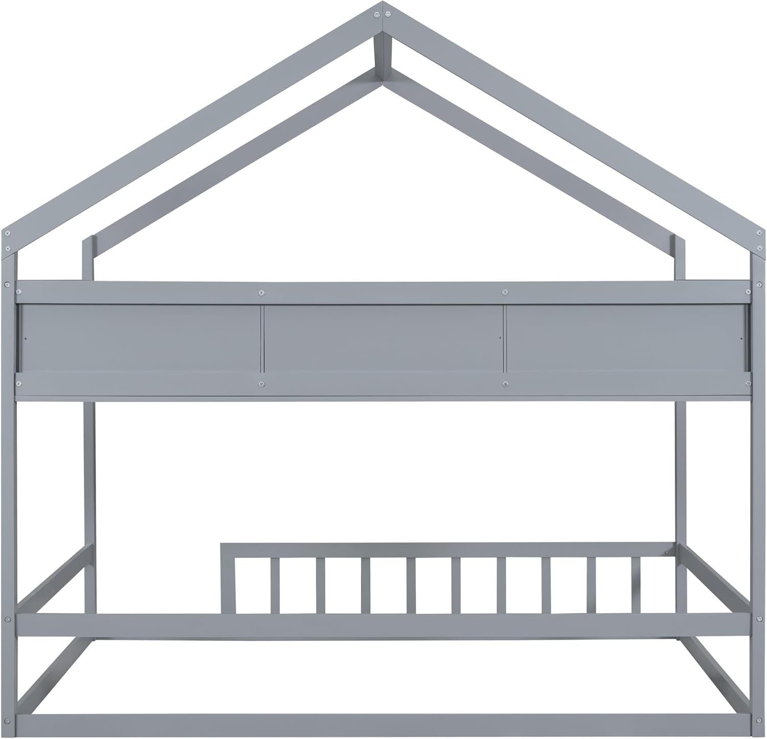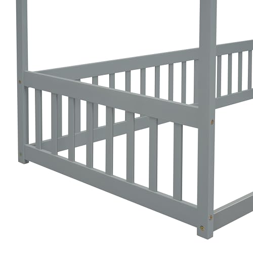Wooden Floor Bed with House Roof Frame, Fence Guardrails,for Kids Teen Toddler Boys Girls Bedroom Use (Grey@Guardrails, Twin)