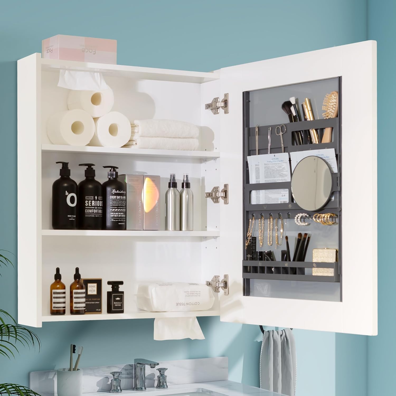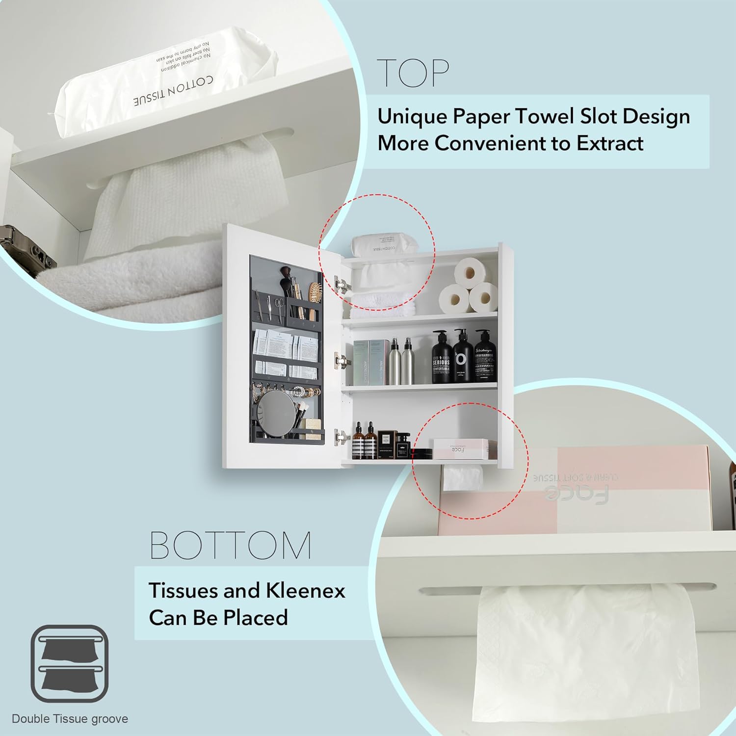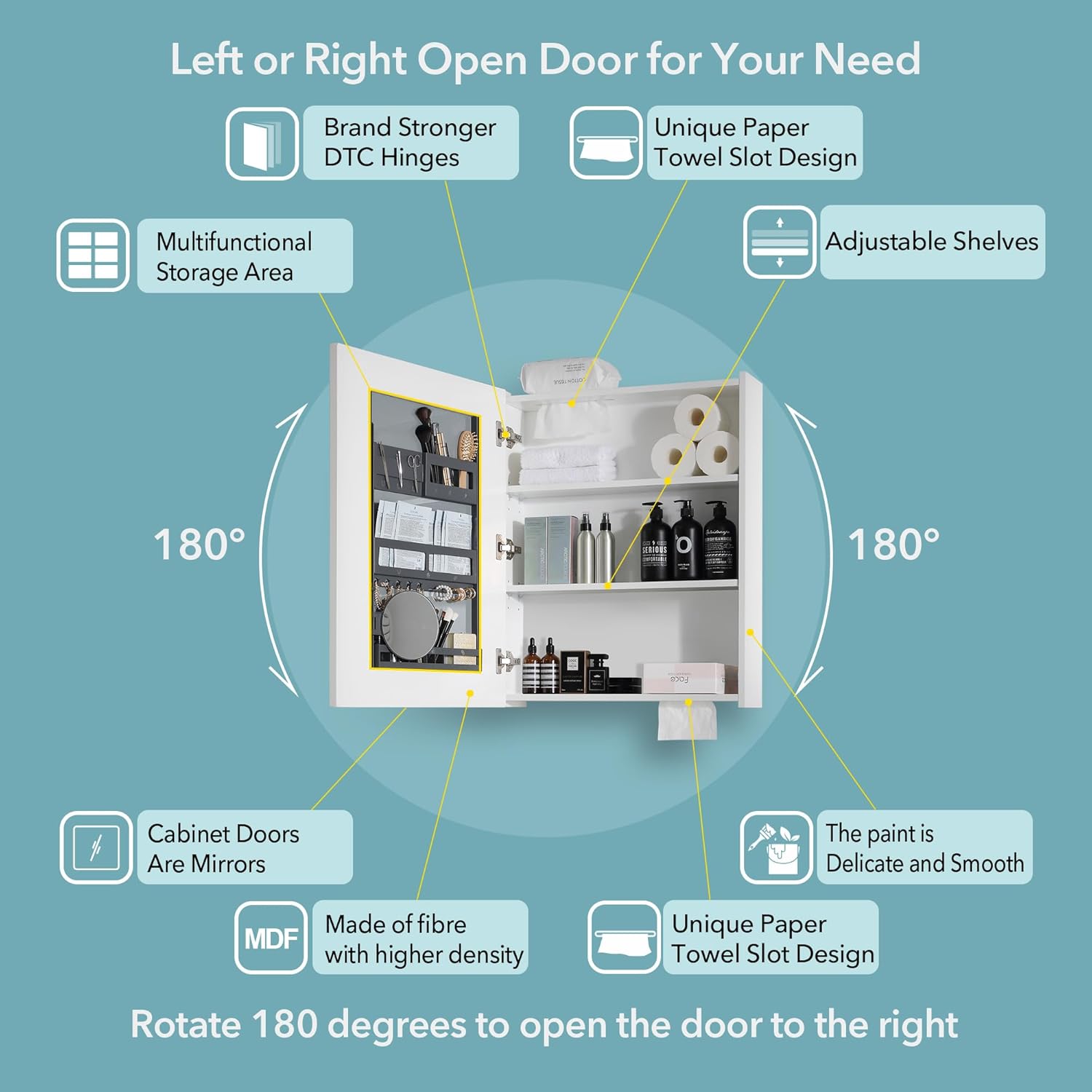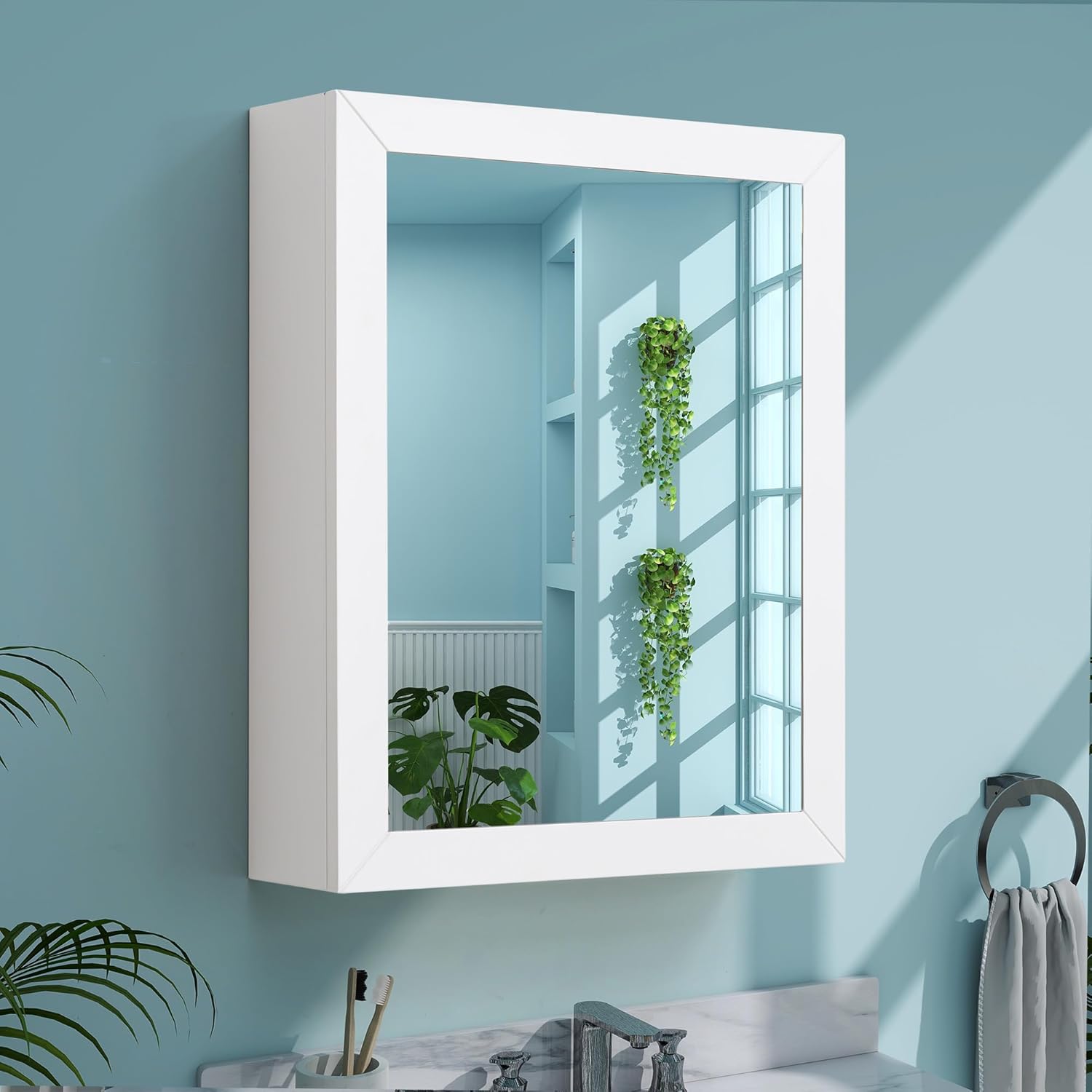 Bathroom Mirror Cabinet - Large Single Door 24x30 inchs Bathroom Mirror with Storage Medicine Cabinet Mirror with Buffering Hinge Adjustable Shelves Durable and MDF Construction