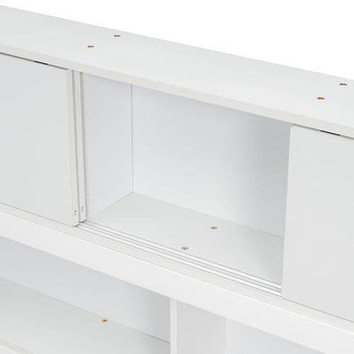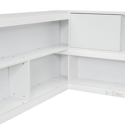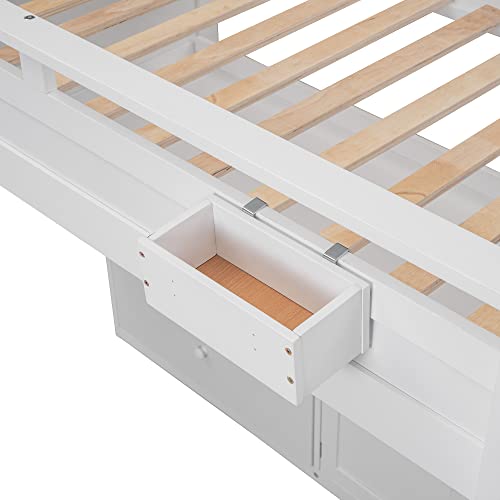 SOFTSEA Full Size Floor Bed, Wooden Floor Bed Frame with Safety Guardrail for Boys and Girls Bedroom, Integral Construction with Super High Security Barrier, Easy Assembly, White