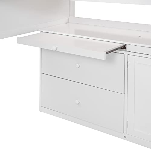 MERITLINE Full Size Car-Shaped Kids Car Bed, Wooden Floor Bed Platform Bed with Guardrails, Full Bed with Headboard and Footboard for Kids Girls Boys, White