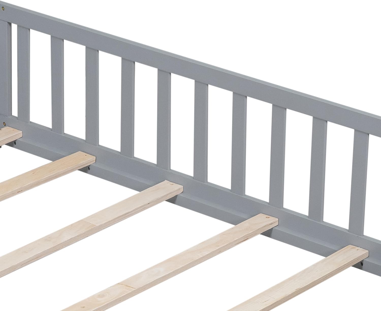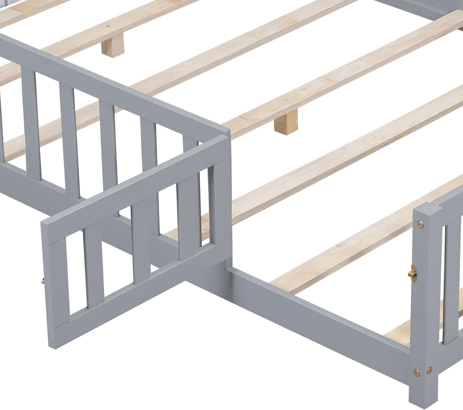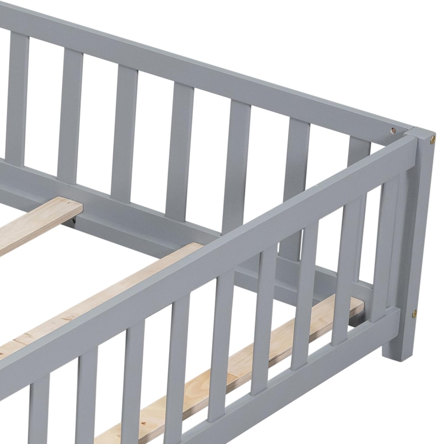 Toddler Floor Bed,Twin Size Floor Bed with Safety Guardrails and Slats, Wooden Floor Bed Frame Without Door, No Box Spring Needed,for Kids Girls & Boy Gray