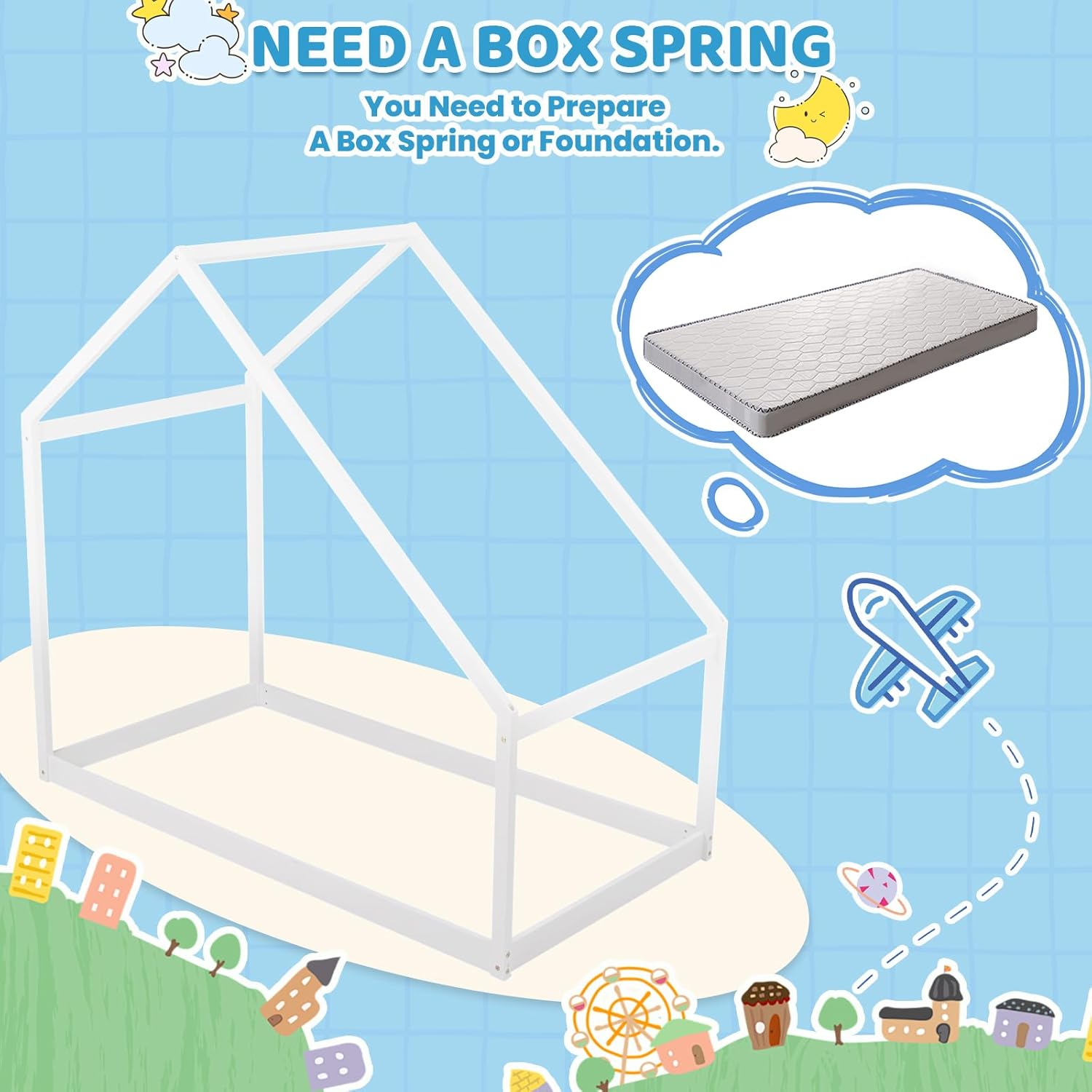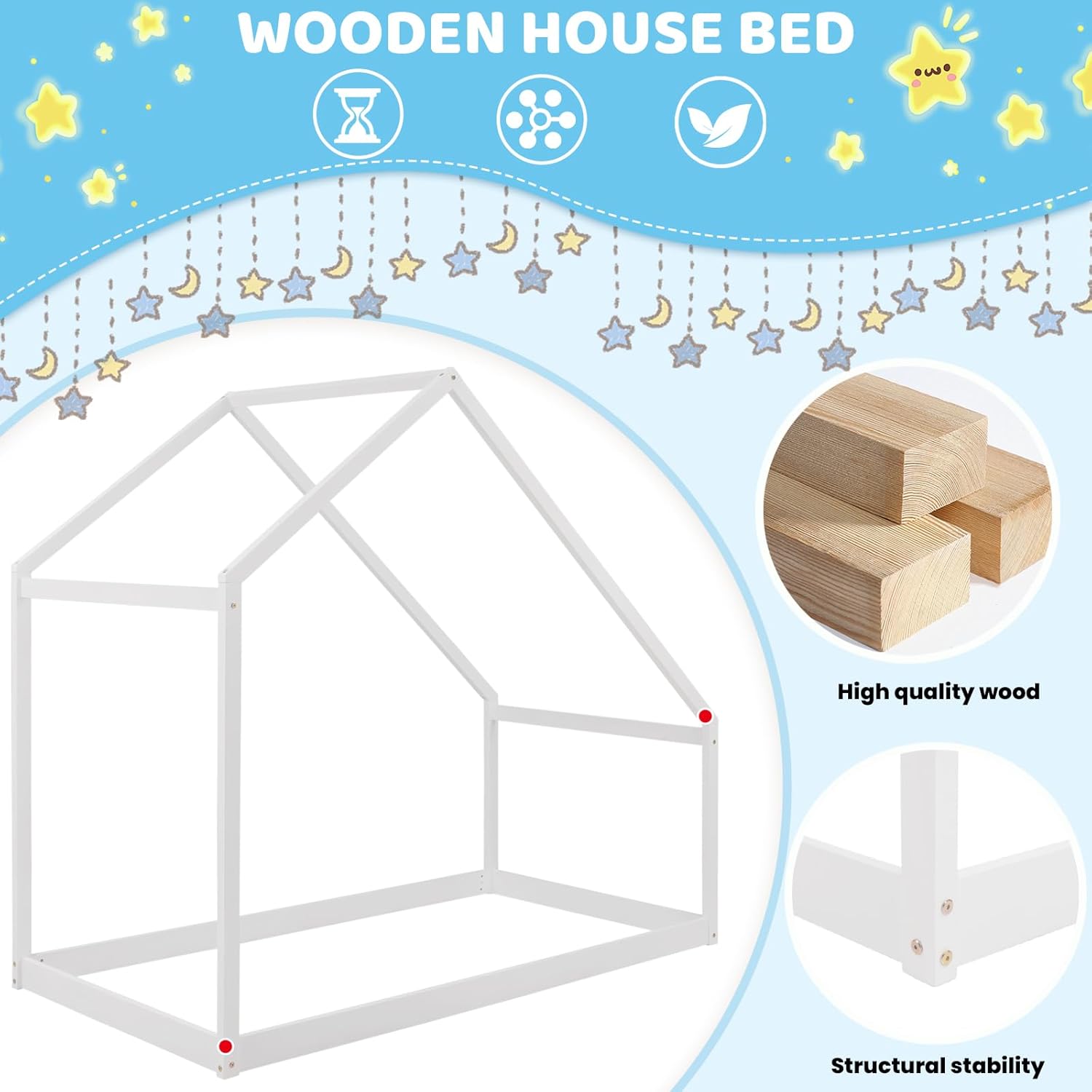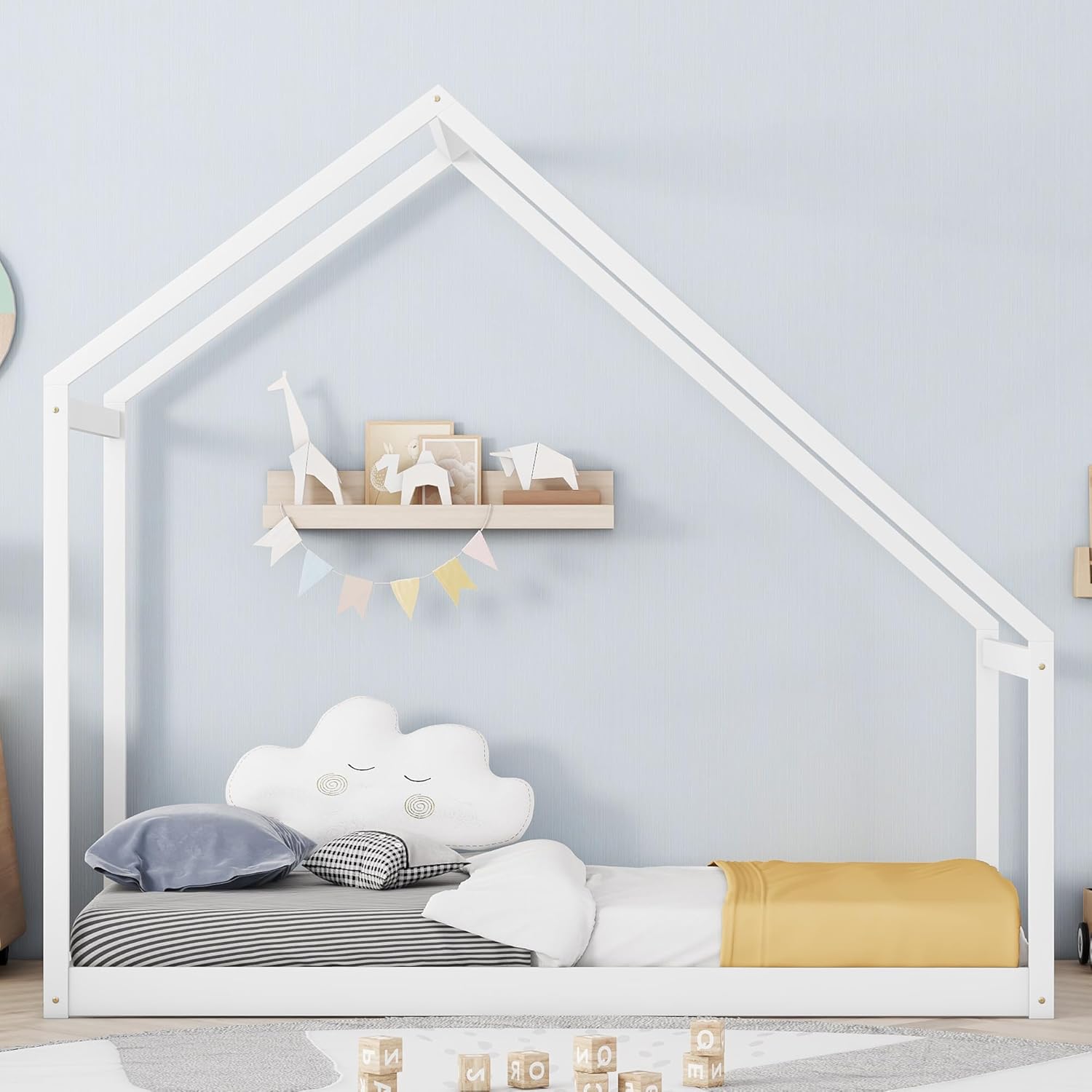 Merax Twin Bed Frames with Roof for Kids Girls Boys, Montessori Wooden House Shaped, Sturdy Framework, Easy Assembly, No Noise