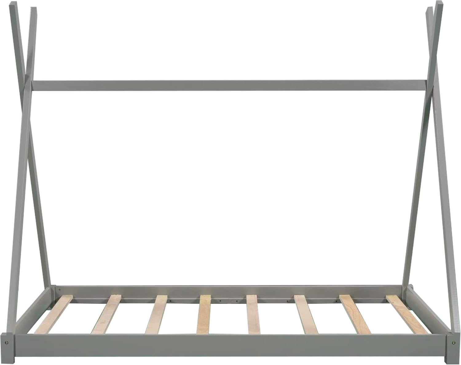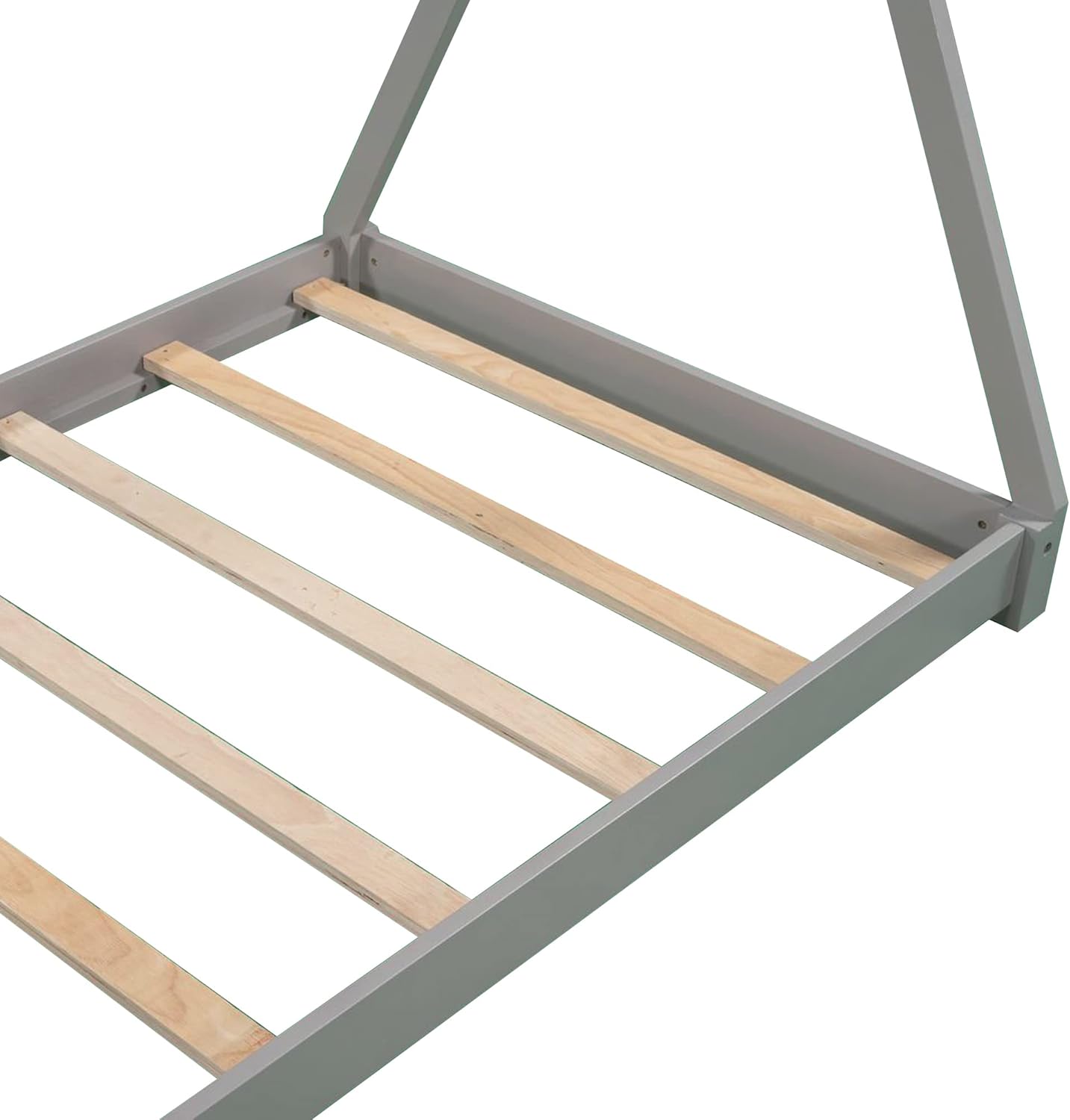 Twin Size House Platform Bed with Triangle Structure,Solid Pine Wood Low Floor Bedframe for Kids Teens Boys Girls,Wooden Slat Support,Grey
