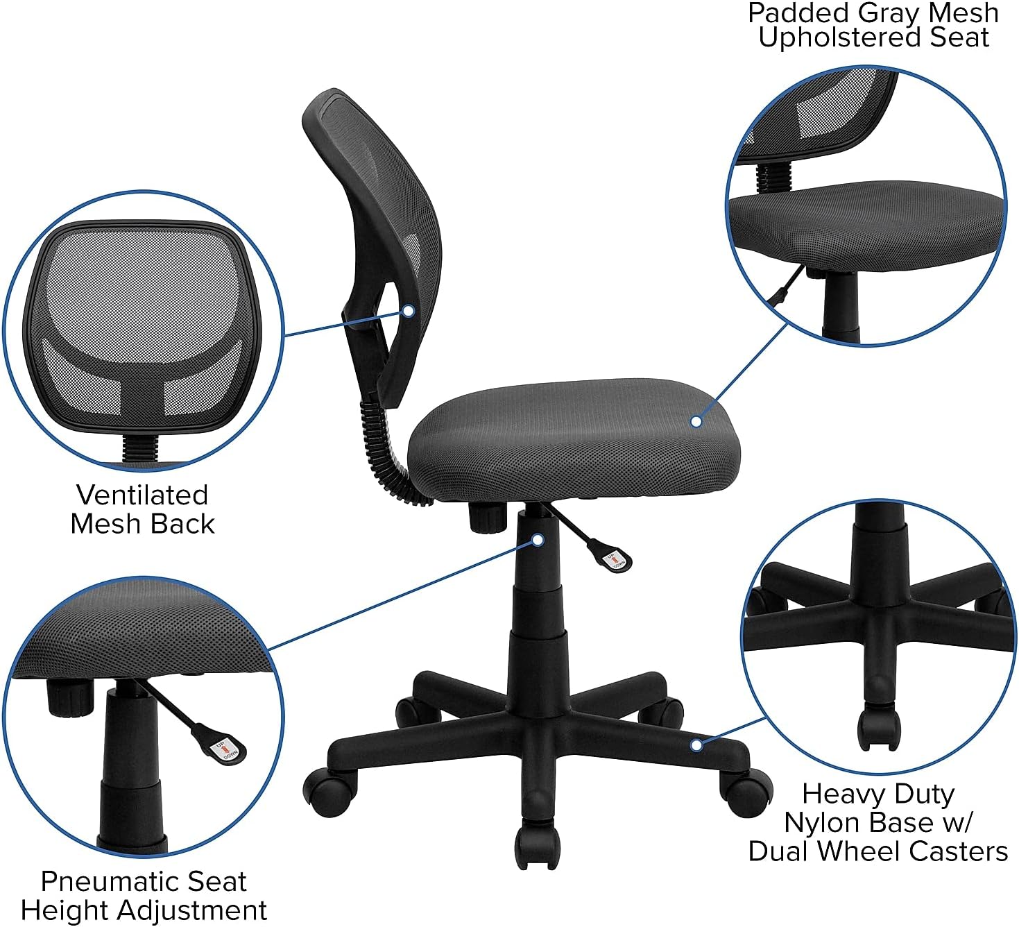 Flash Furniture 074GY Mesh Task Chair, Gray (WA-3074-GY-GG)