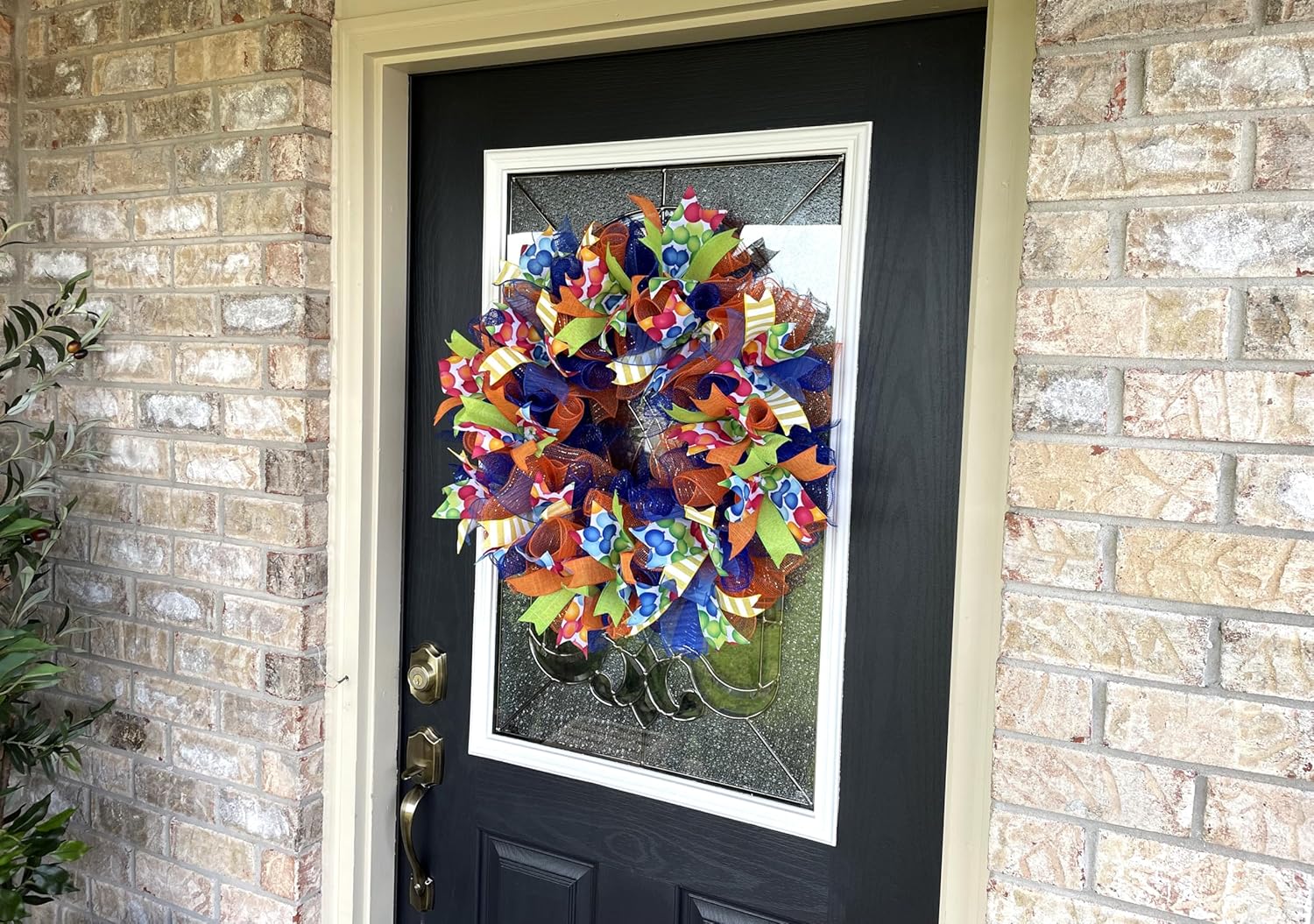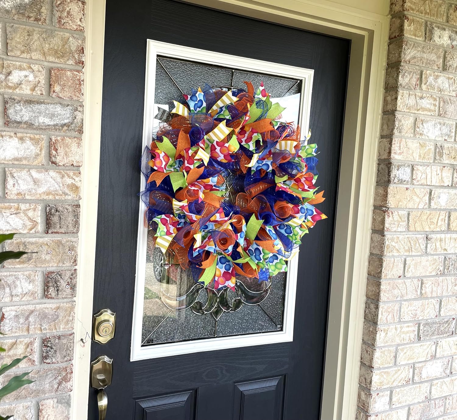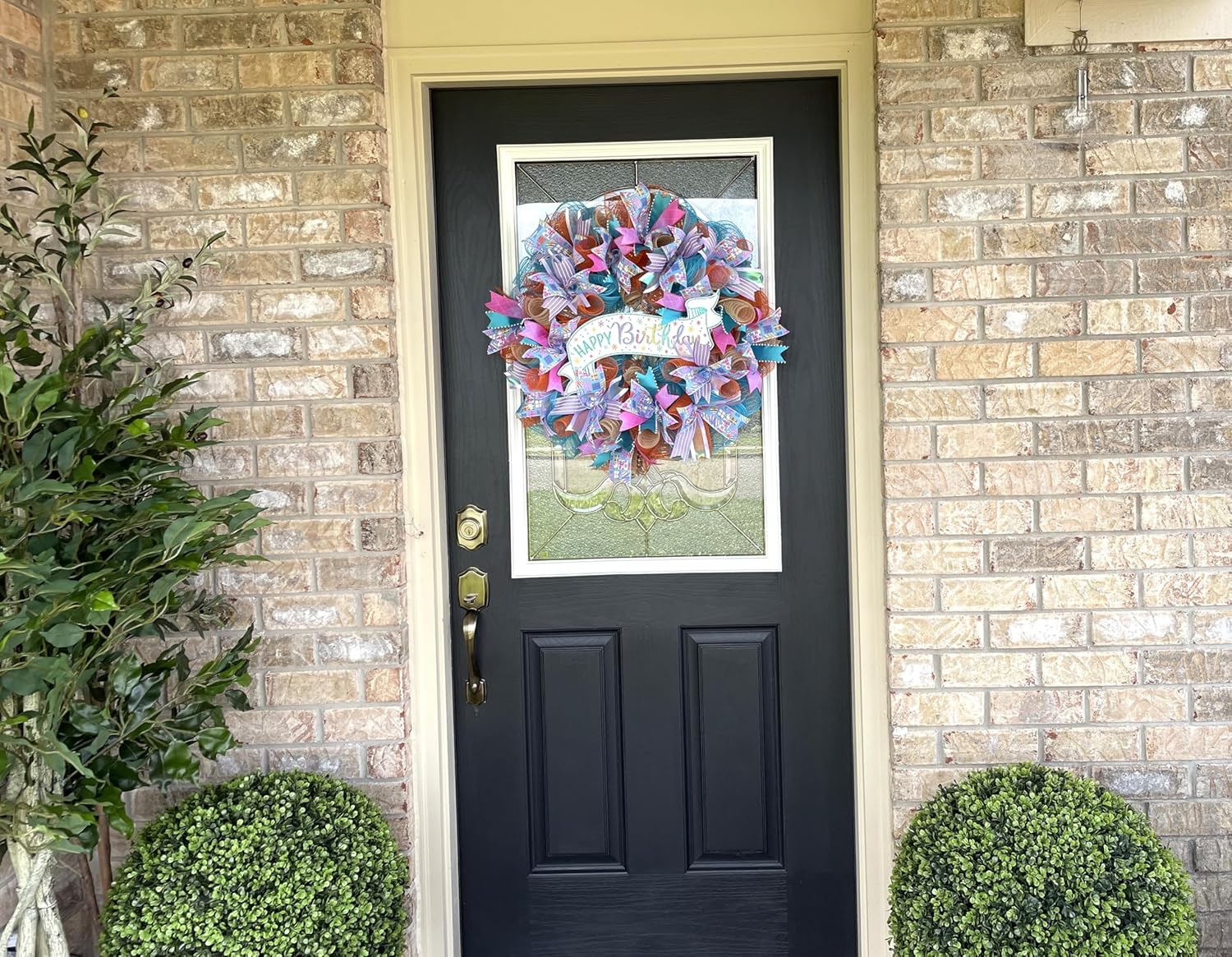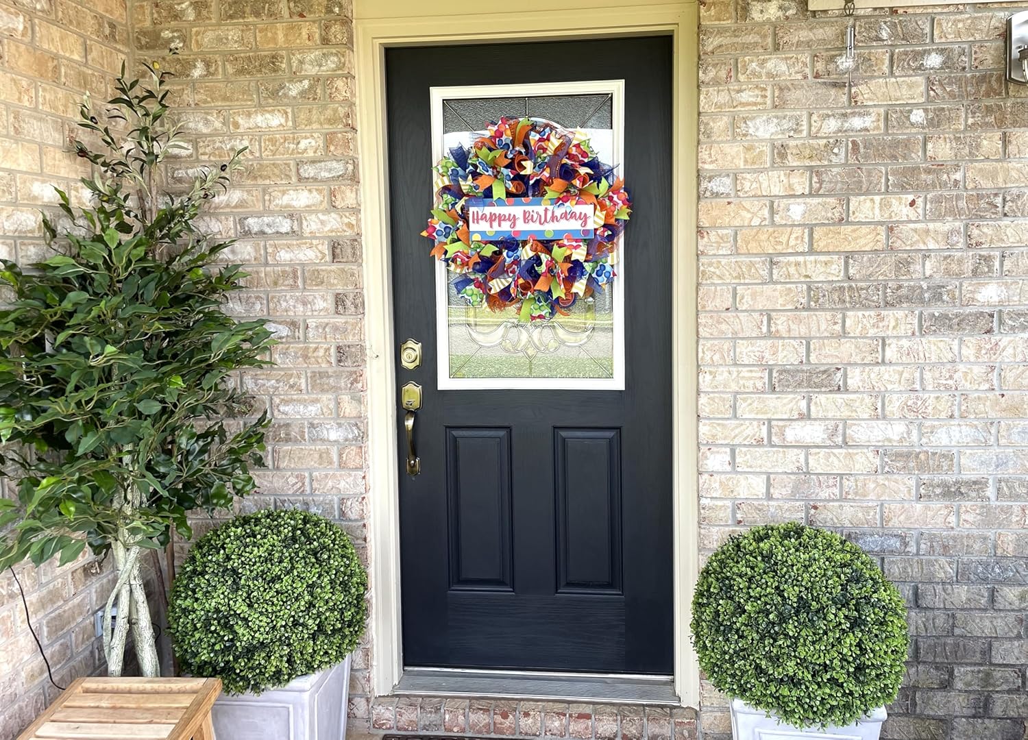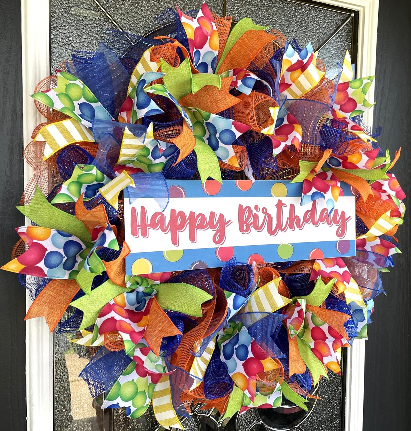 Happy Birthday Balloon Primary Color Party Deco Mesh Front Door Wreath Home Holiday Decor Fun Festive Summer Decor Indoor Outdoor