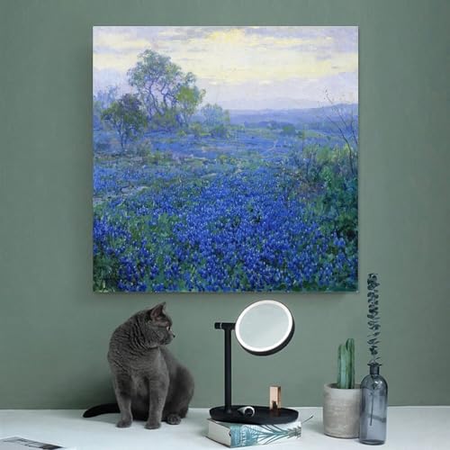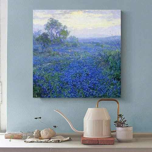 A Cloudy Day Bluebonnets Near San Antonio Texas by Julian Onderdonk Poster Canvas Wall Art Posters For Room Aesthetic And Decor Canvas Painting Wall Art Poster for Bedroom Living Room Decor 12x12inch(