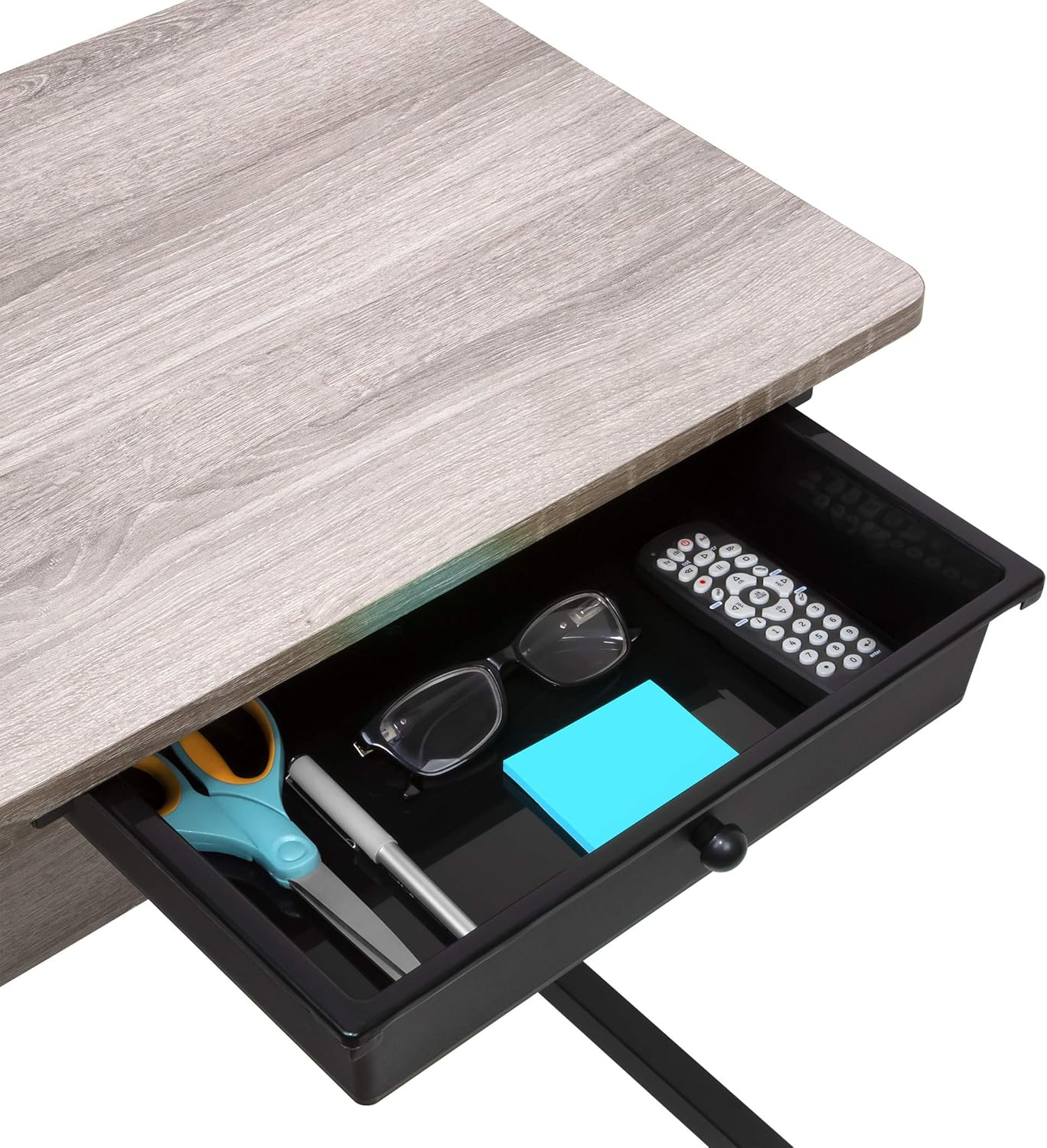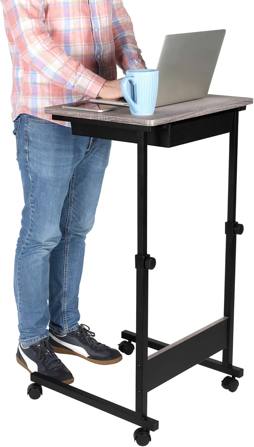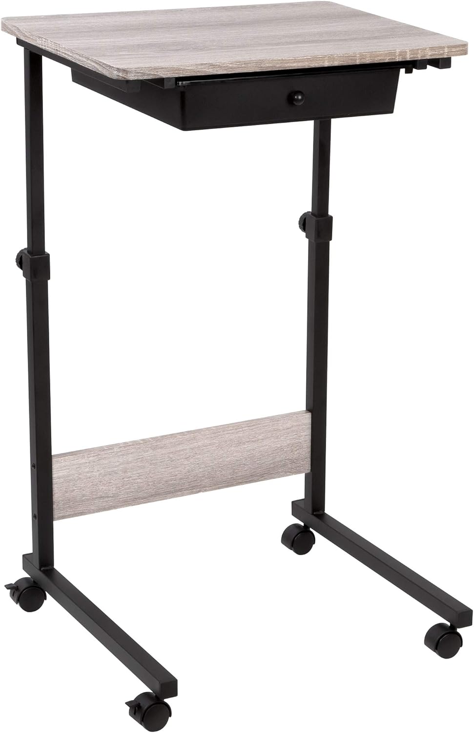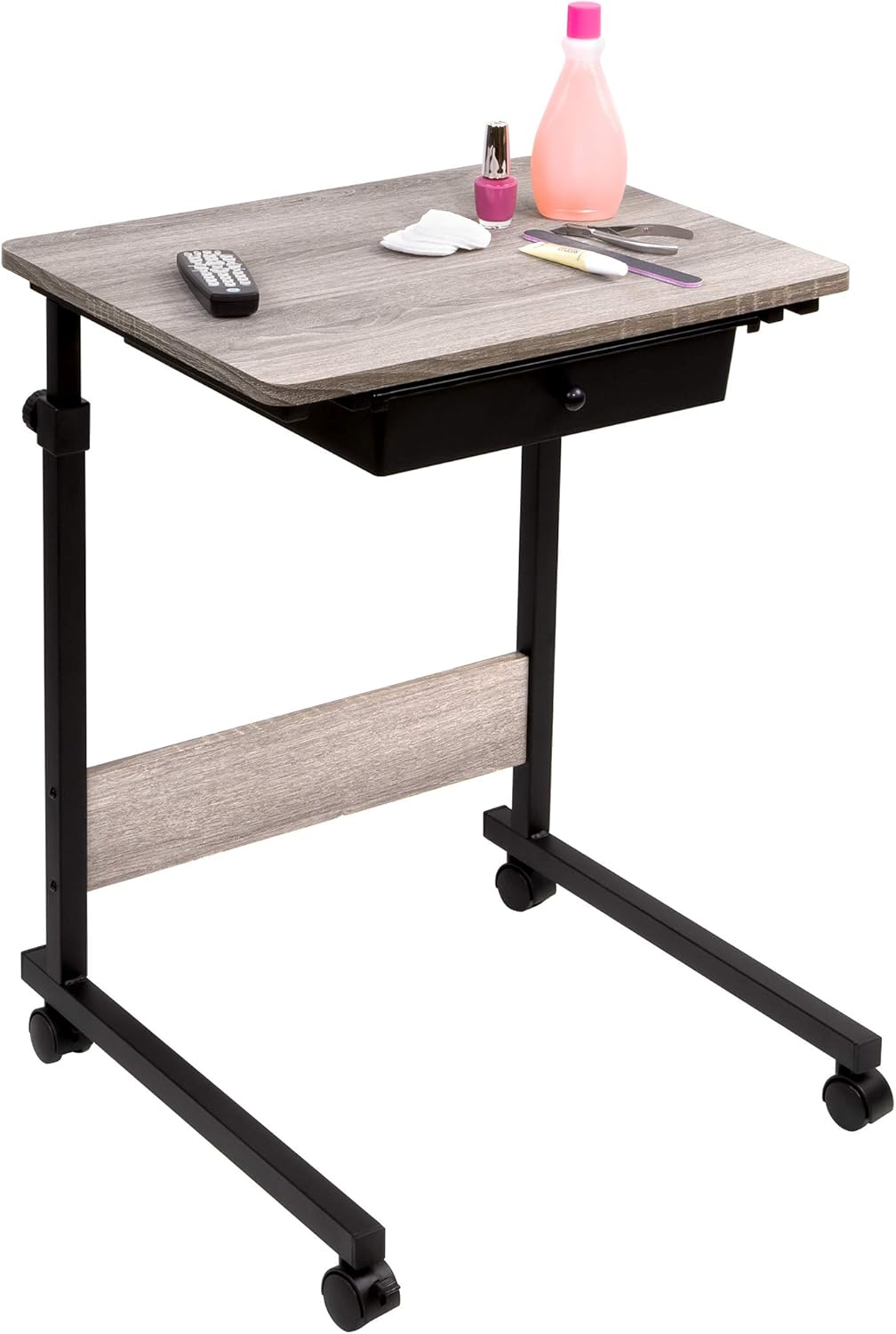 Adjustable Height Rolling Table, Matte Black with Wood Grain Laminate Top