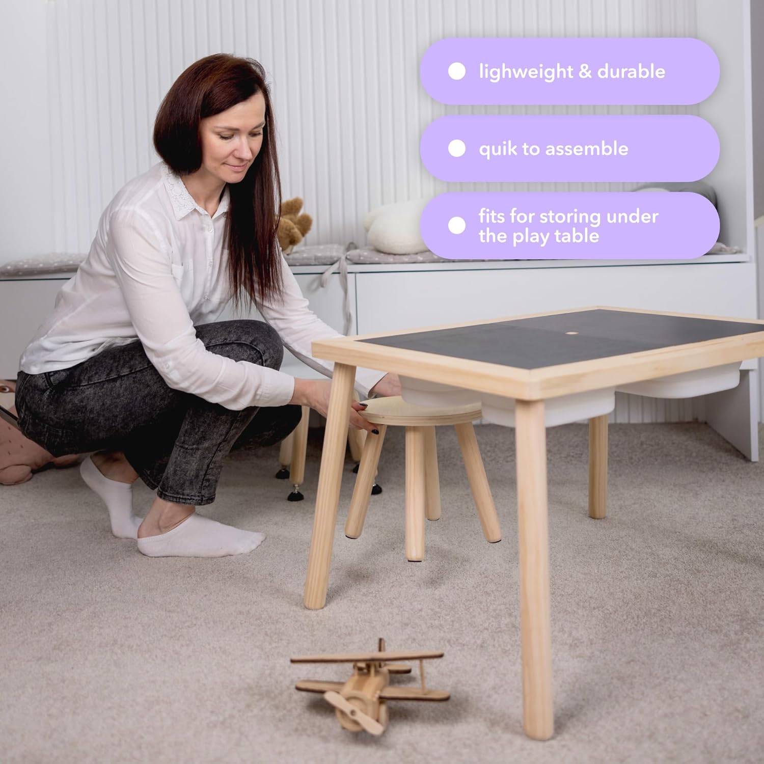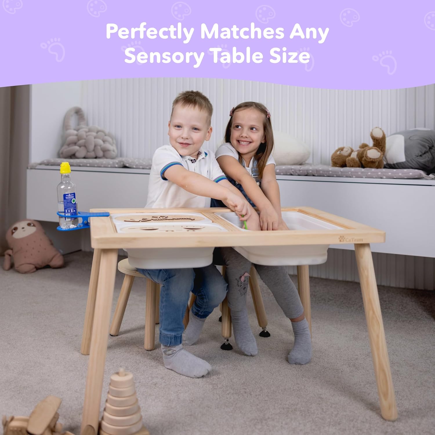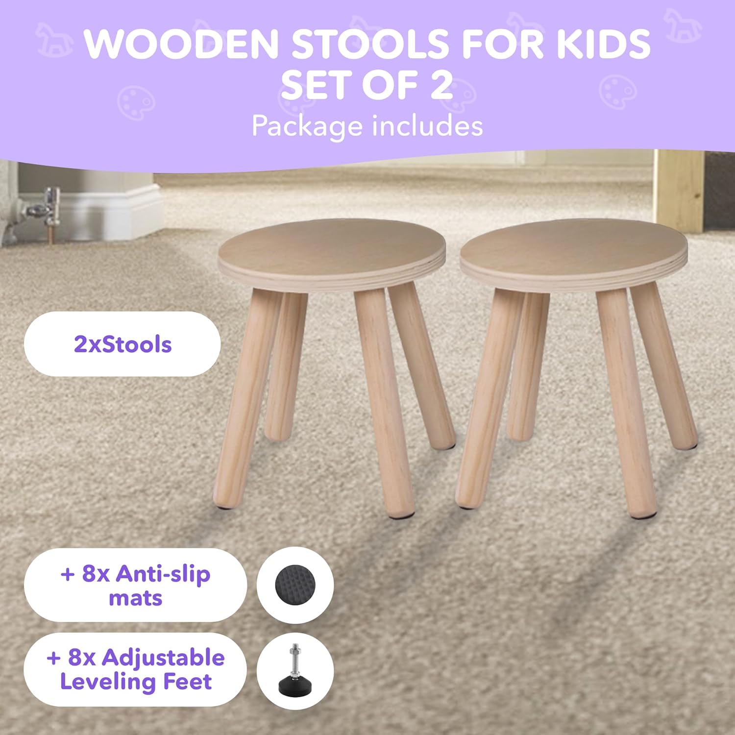 Cateam Wooden Step Stool for Kids and Toddlers - Set of 2 - Natural - Extendable Legs Kids Chair - Sensory Table Stool - Children's Round Sitting Stool with Leveling Feet and Anti-Slip Pads