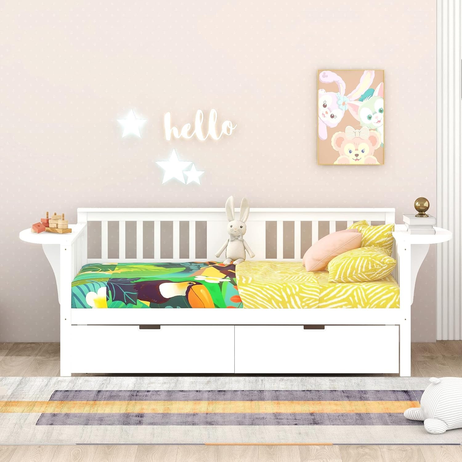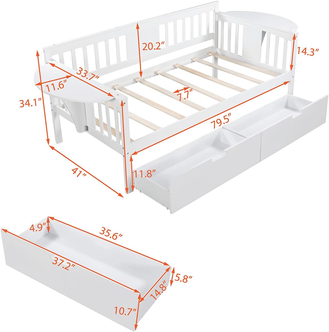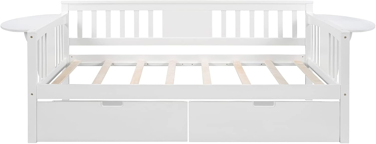Twin Daybed with Drawers, Wood Daybed Frame for Kids Adults Twin Size Day Bed for Bedroom, Living Room, White