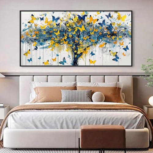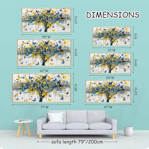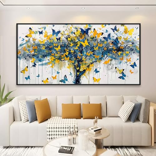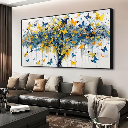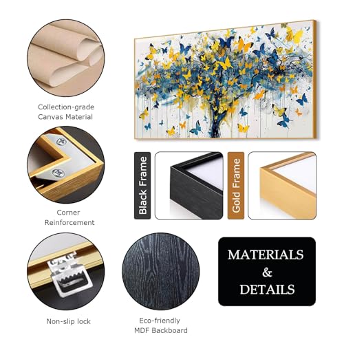 Tree of Life Wall Art, Butterfly Canvas Wall Art, Tree of Life Canvas Wall Art, Butterfly Pictures Wall Decor, Tree Wall Decor, Graffiti Canvas Art, Wall Decor Living Room, Home Decor (Black Frame, 39"x19" | 100x50cm)