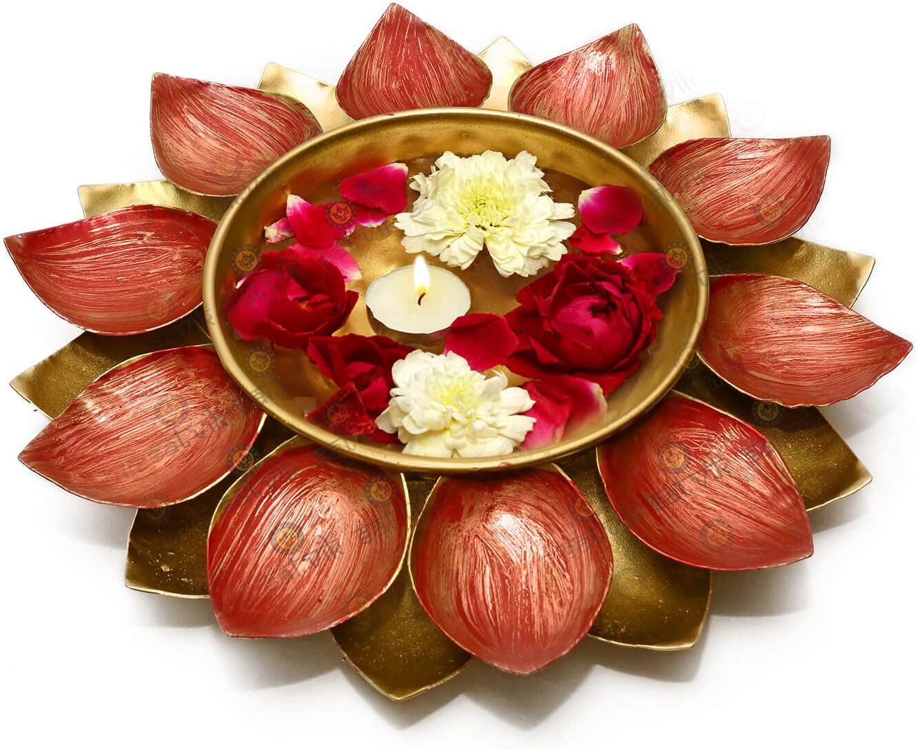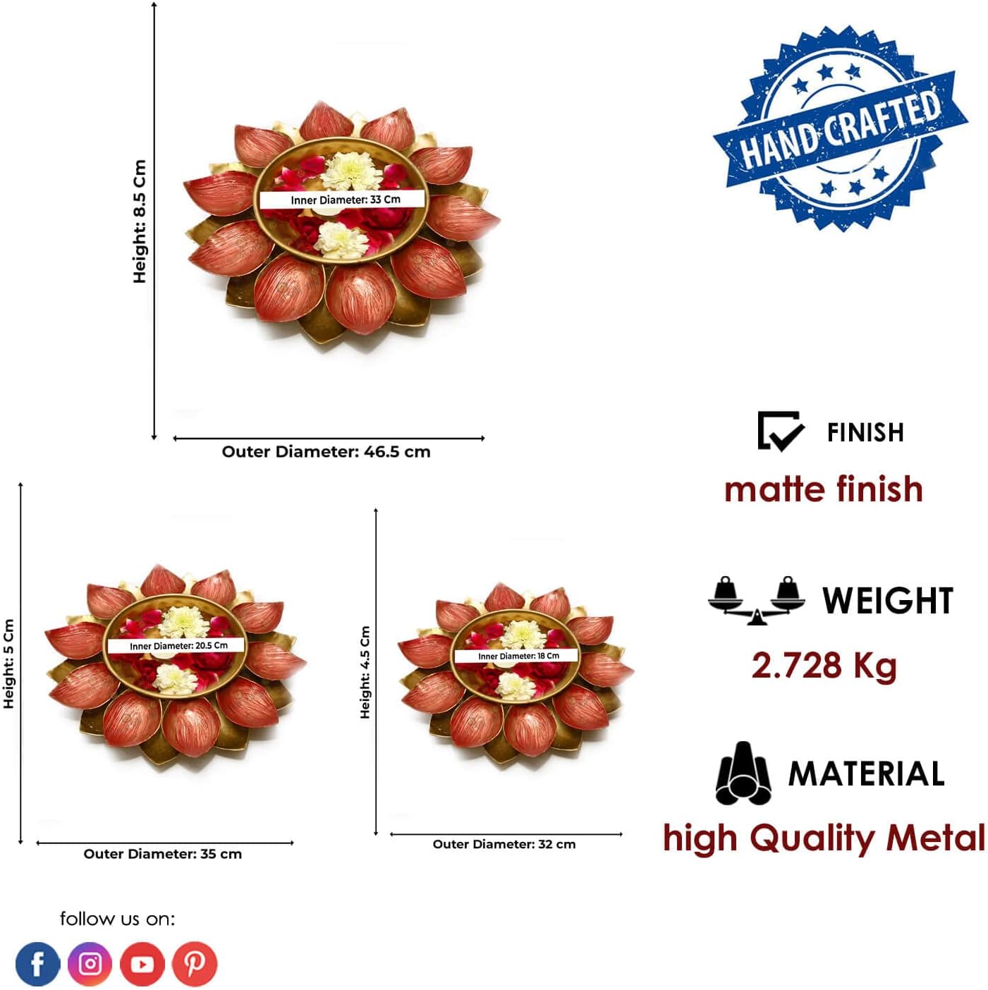 Satvik 3 Pc Designer Red Lotus Petals Shape Metal Urli, Beautiful Flower Floating Bowl with Tea Light Holder, Festival Tealight Living Room Decoration, Designer Home Decoration Ideas