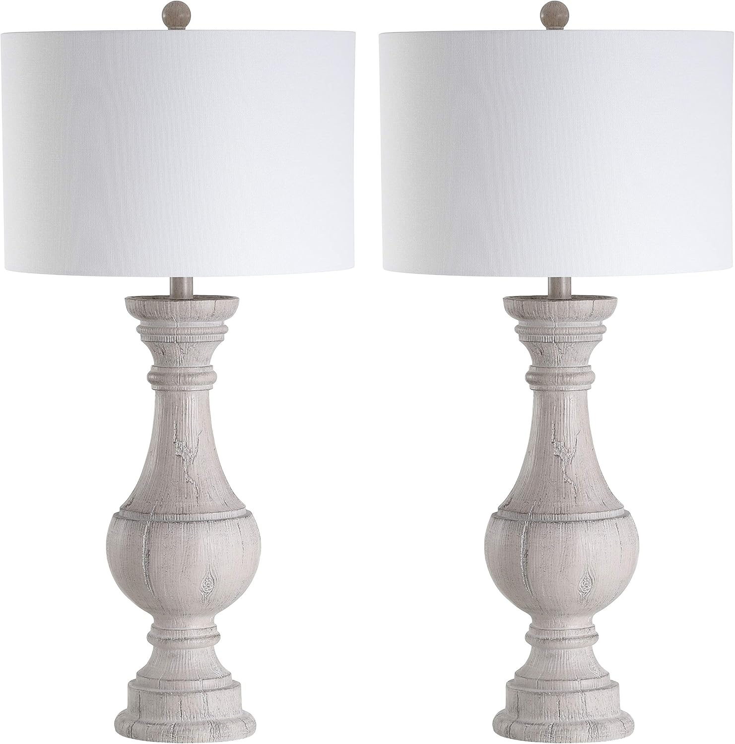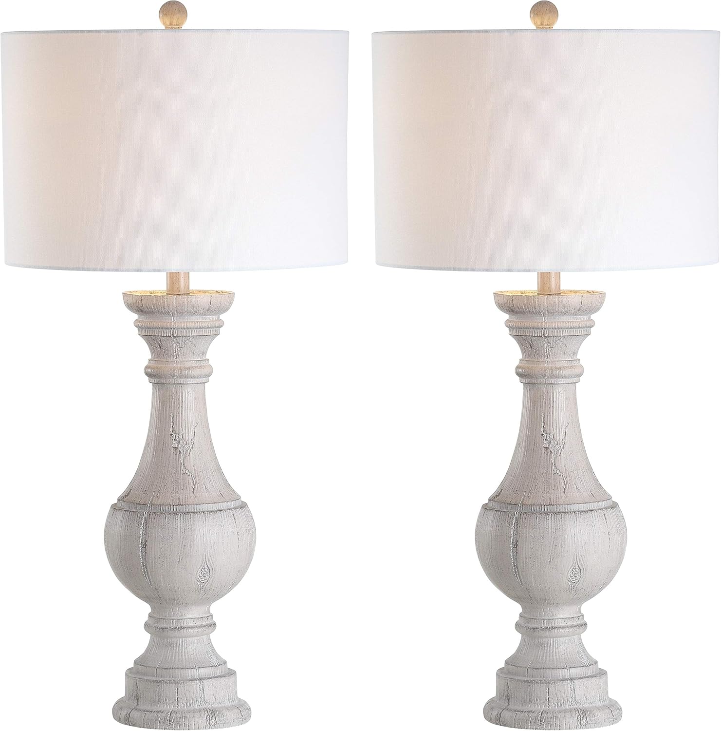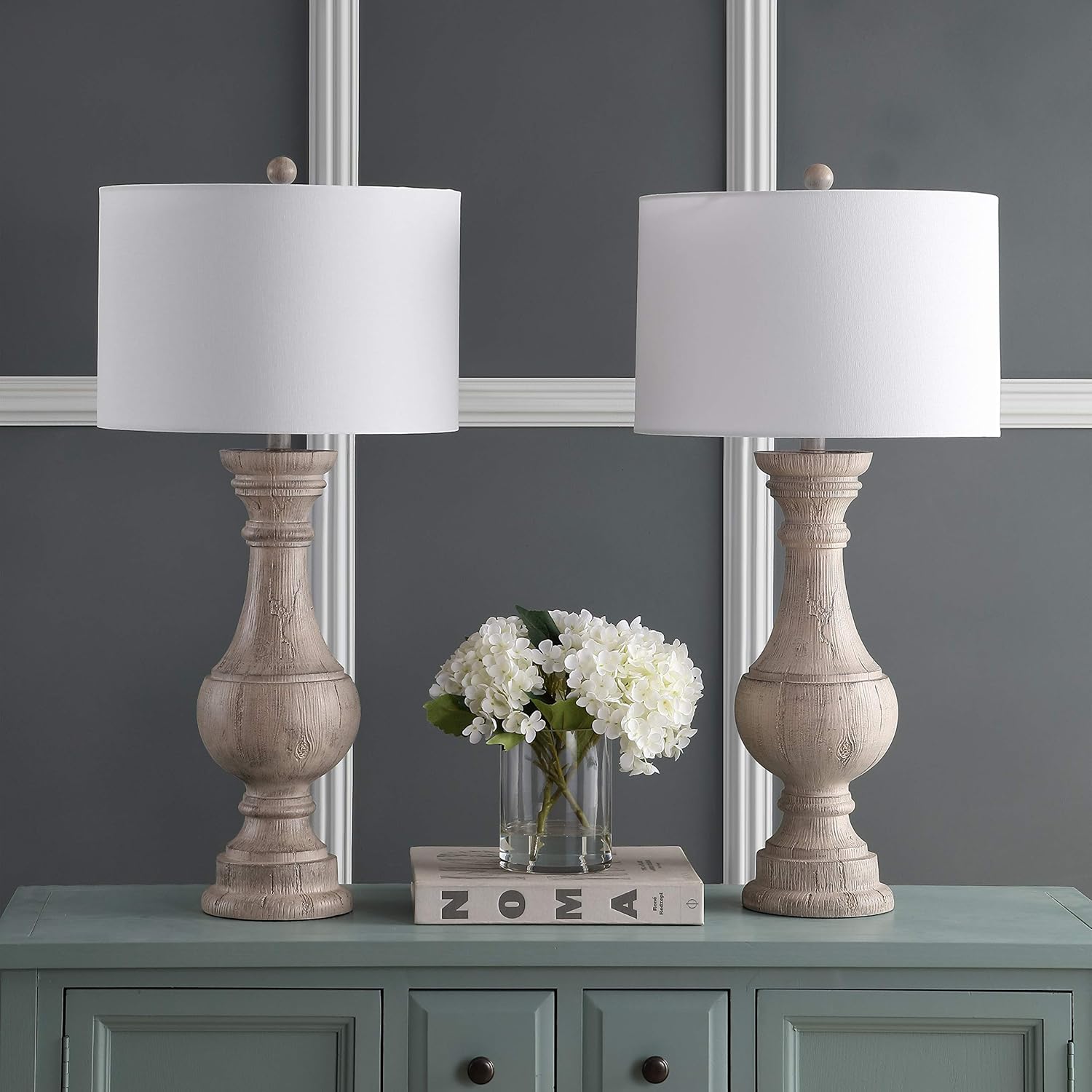 SAFAVIEH Lighting Collection Savion White 31-inch Bedroom Living Room Home Office Desk Nightstand Table Lamp Set of 2 (LED Bulbs Included)