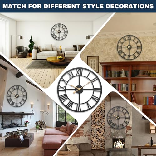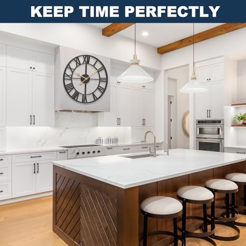14 Inch Large Wall Clocks for Living Room Decor,Big Silent Battery Operated Metal Wall Clock,Rustic Modern Farmhouse Roman Numerals Wall Clock for Kitchen,Office,Bedroom,Dinng Room