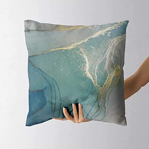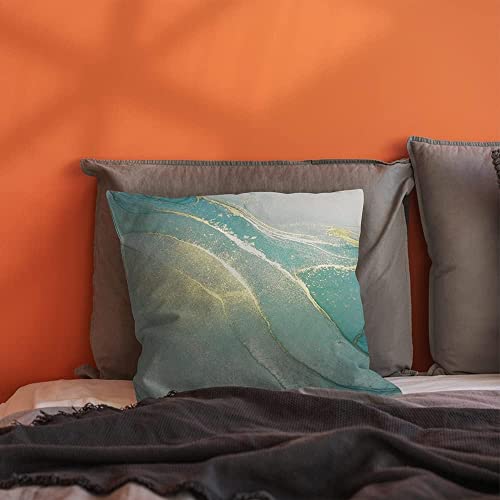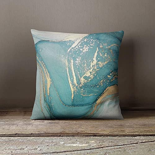 Turquoise Throw Pillow Covers, Decorative Green and Blue Pillow Covers 18x18 Emerald Gold Pillowcase for Living Room Home Car Bedroom Marble Print Cushion Cover