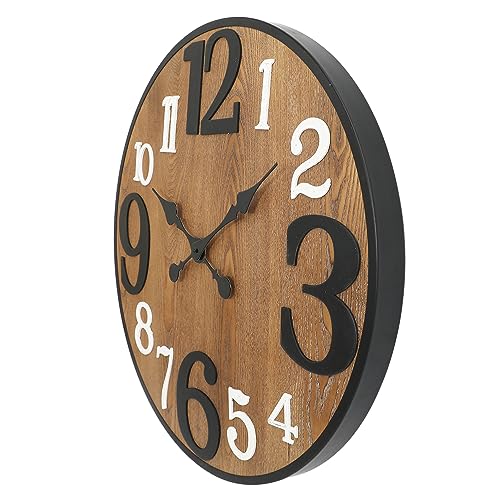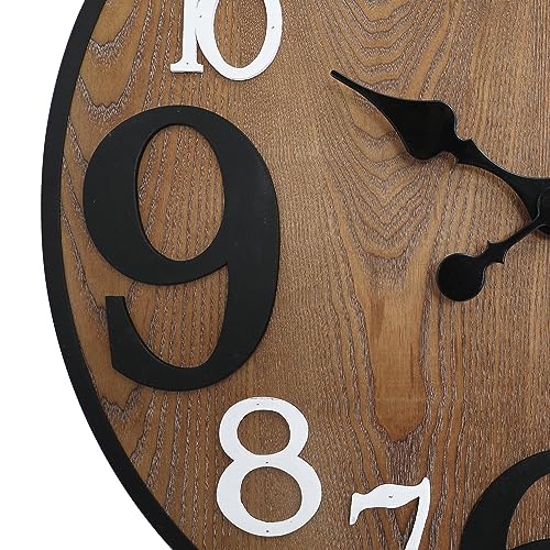 RiteSune 24 Inch Wood Wall Clock, Modern Large Numerals Battery Operated Quartz Movement, Black Metal Frame Decor Clock for Living Room Office Kitchen Bedroom, Entryway, Home, Office