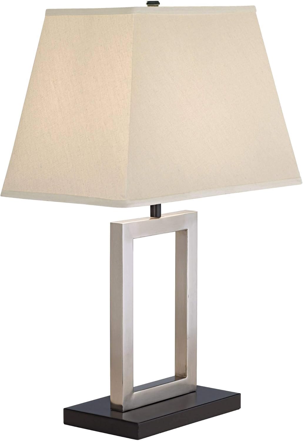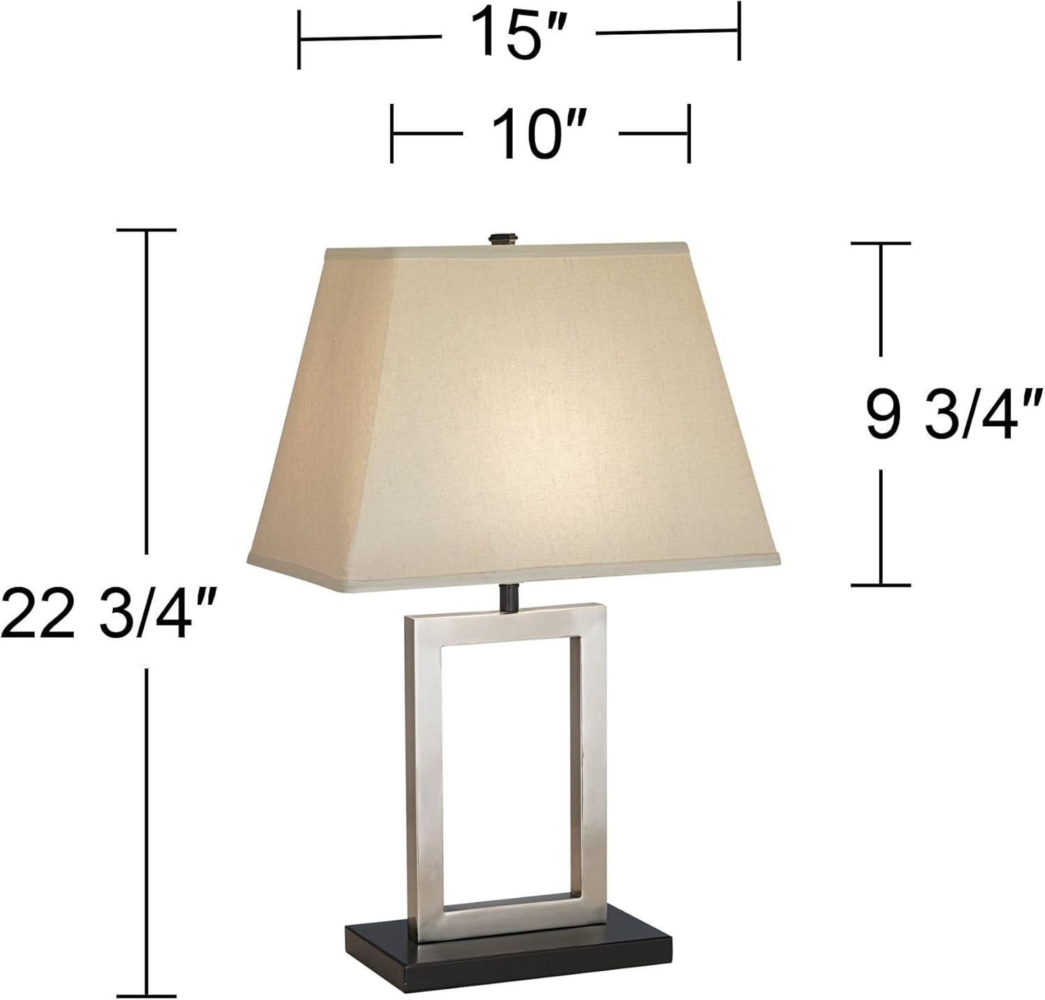 360 Lighting Modern Accent Table Lamp 22 3/4" High Brushed Nickel Open Geometric Metal Rectangular Linen Fabric Shade for Bedroom Living Room House Home Bedside Nightstand Office Family