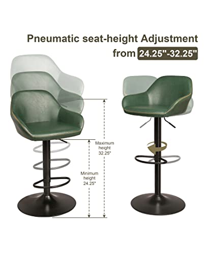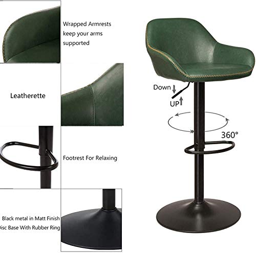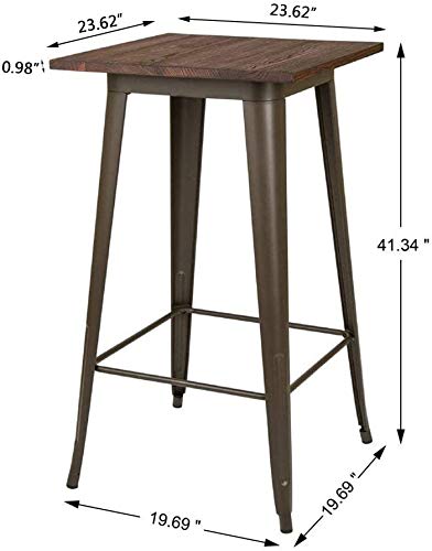 glitzhome 3 Piece Pub Table and Chairs Set, Square Rustic Bar Height Top Table and Adjustable Swive Hunter Green Bar Stools for kitchen Bistro Diningroom Breakfast
