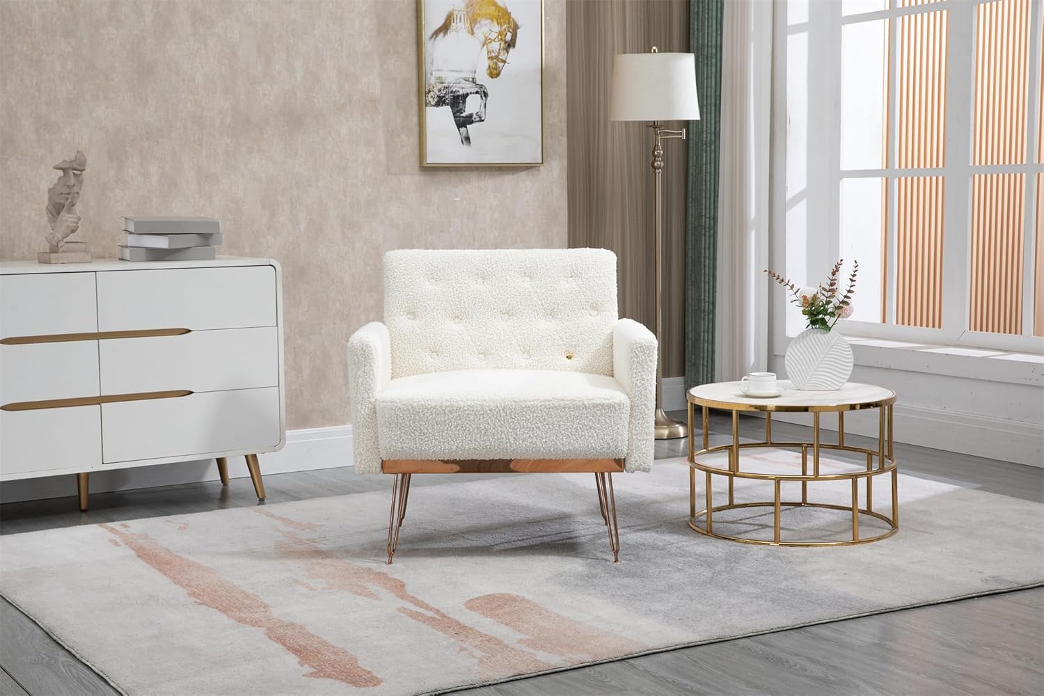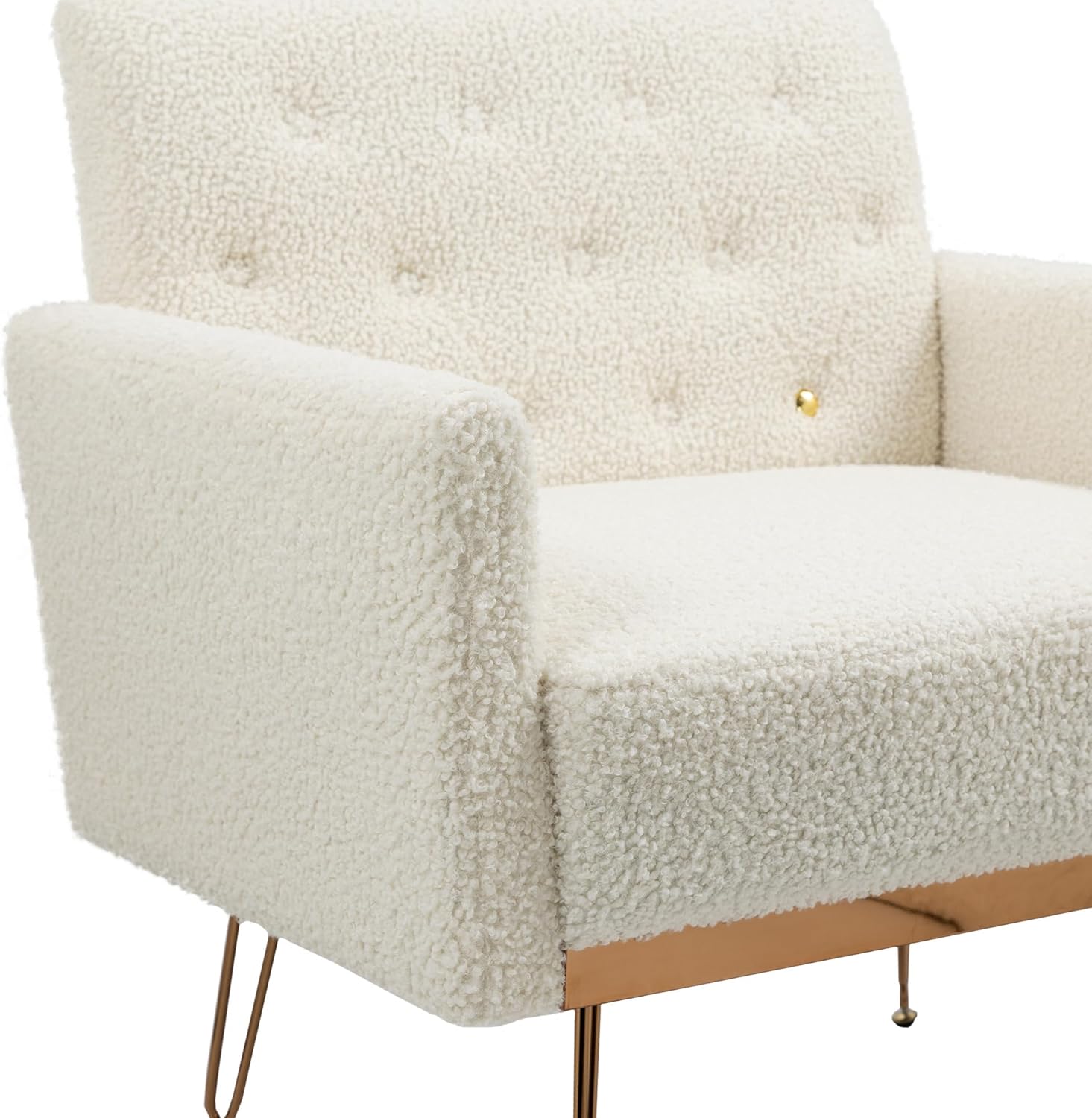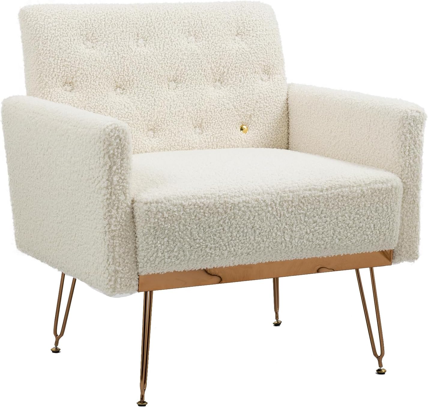 Modern Accent Armchair, Upholstered Teddy Short Plush Particle Leisure Single Sofa with Rose Golden Feet for Living Room, Bedroom, Office, Nail Salon