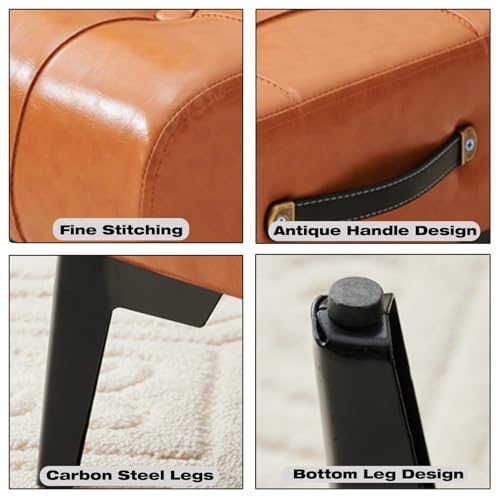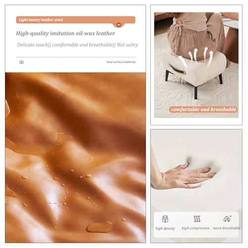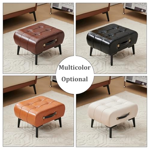 Small Footstool Ottoman Bench Footrest Faux Leather Rectangle Vanity Stool Chair with Padded Seat,Sofa Short Stool for Extra Seating in Living Room,Entryway,Side Table,Office(Brown)
