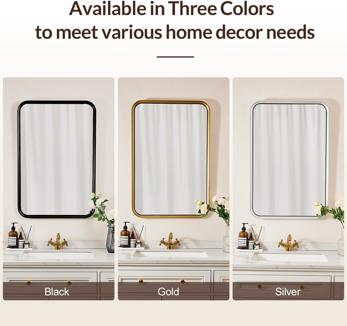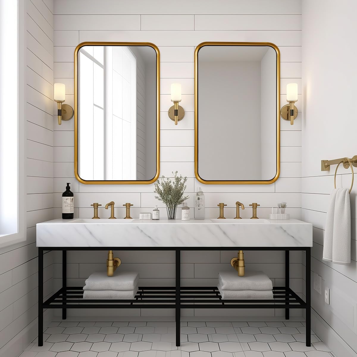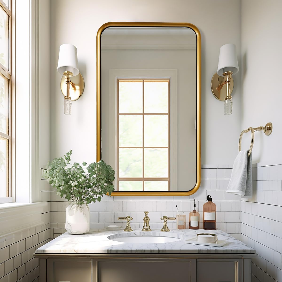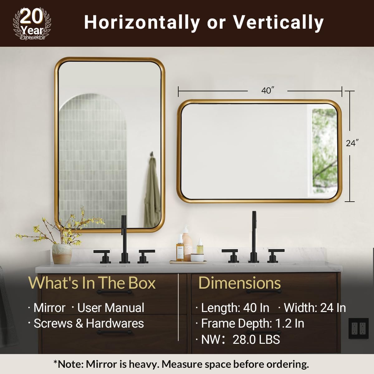 ANDY STAR 24x40 Inch Gold Mirror, Rectangle Bathroom Mirror in Style Beveled Metal Frame, Large Brass Mirror with Anti-Rust Polished Gold Finish (Horizontal/Vertical)