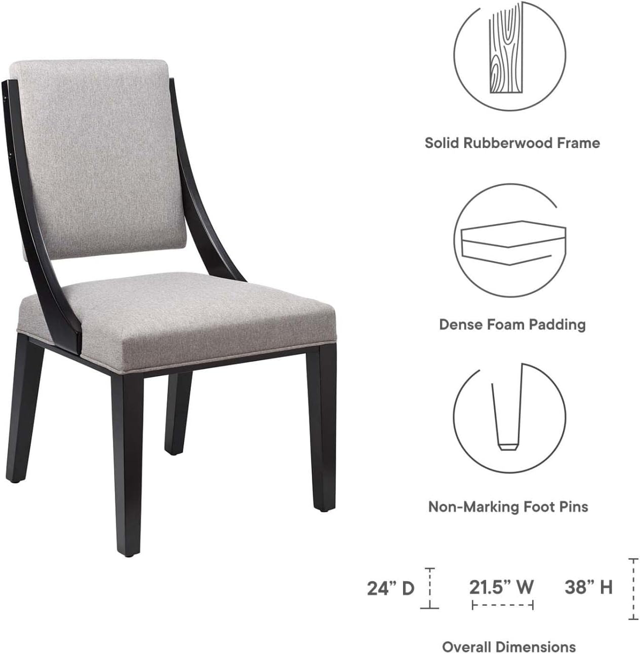 Modway Cambridge Solid Wood and Fabric Dining Chairs in Light Gray (Set of 2)