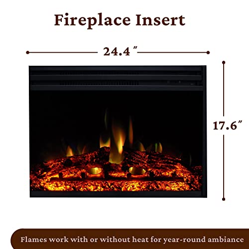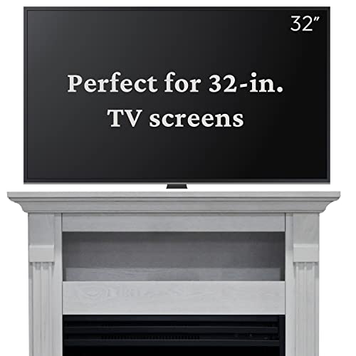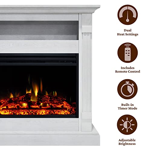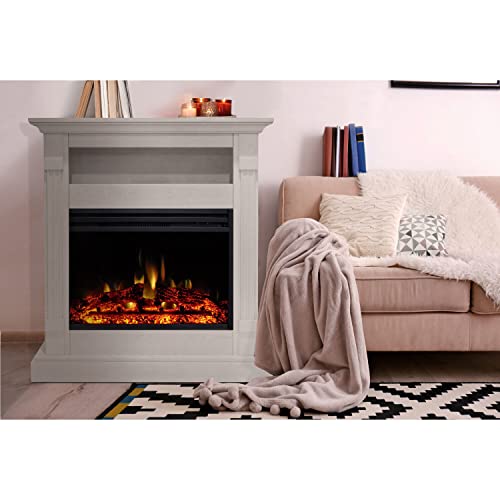 Cambridge Sienna 34 Inch Freestanding Fireplace Mantel with Storage Shelf and 1500W Electric Heater Insert with Deep Log Display, Colorful Flames, Remote Control, White