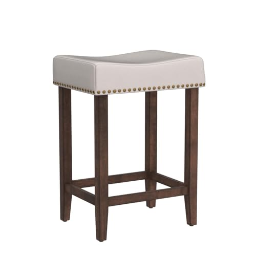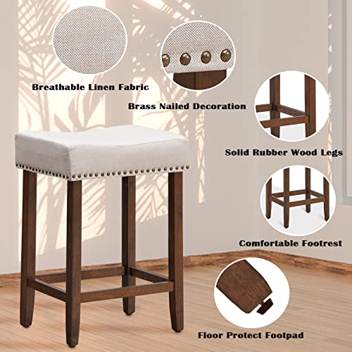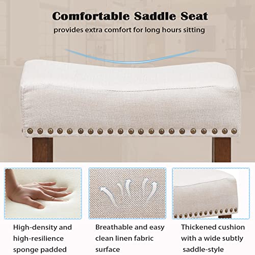 ERGOMASTER Bar Stools for Kitchen Island Set of 4 Bar Height Bar Stools 29 Inch Backless Barstools Modern Fabric Saddle Stools with Sturdy Wood Legs, Max Load 330lbs, Khaki/Brown