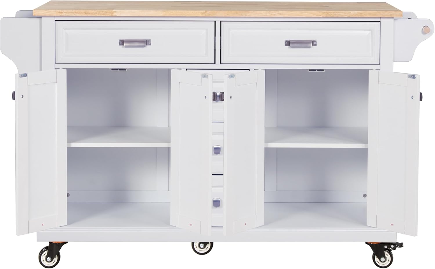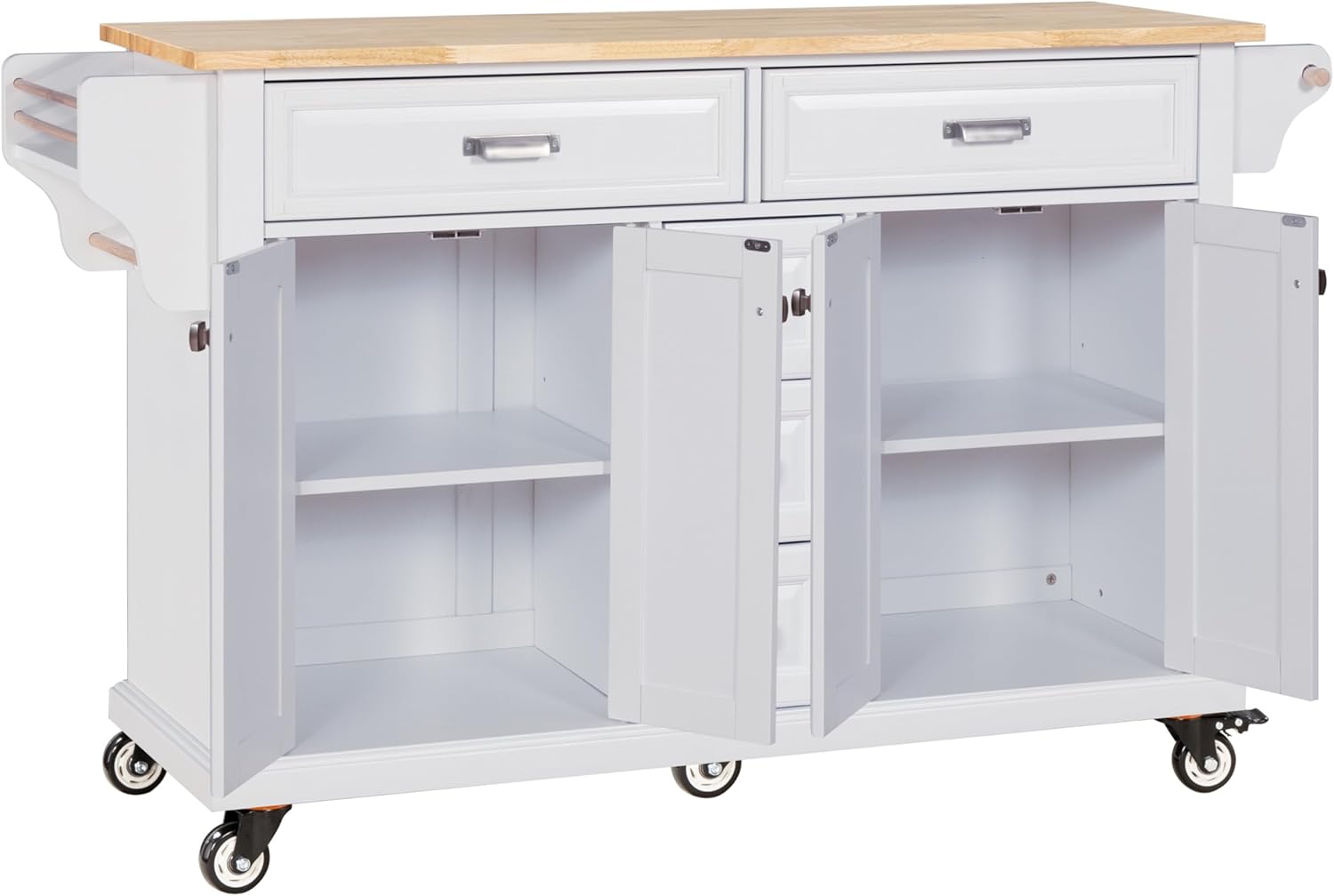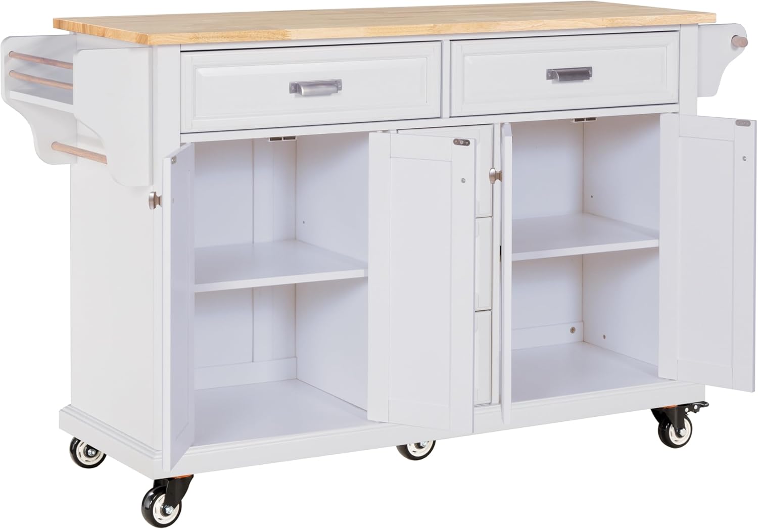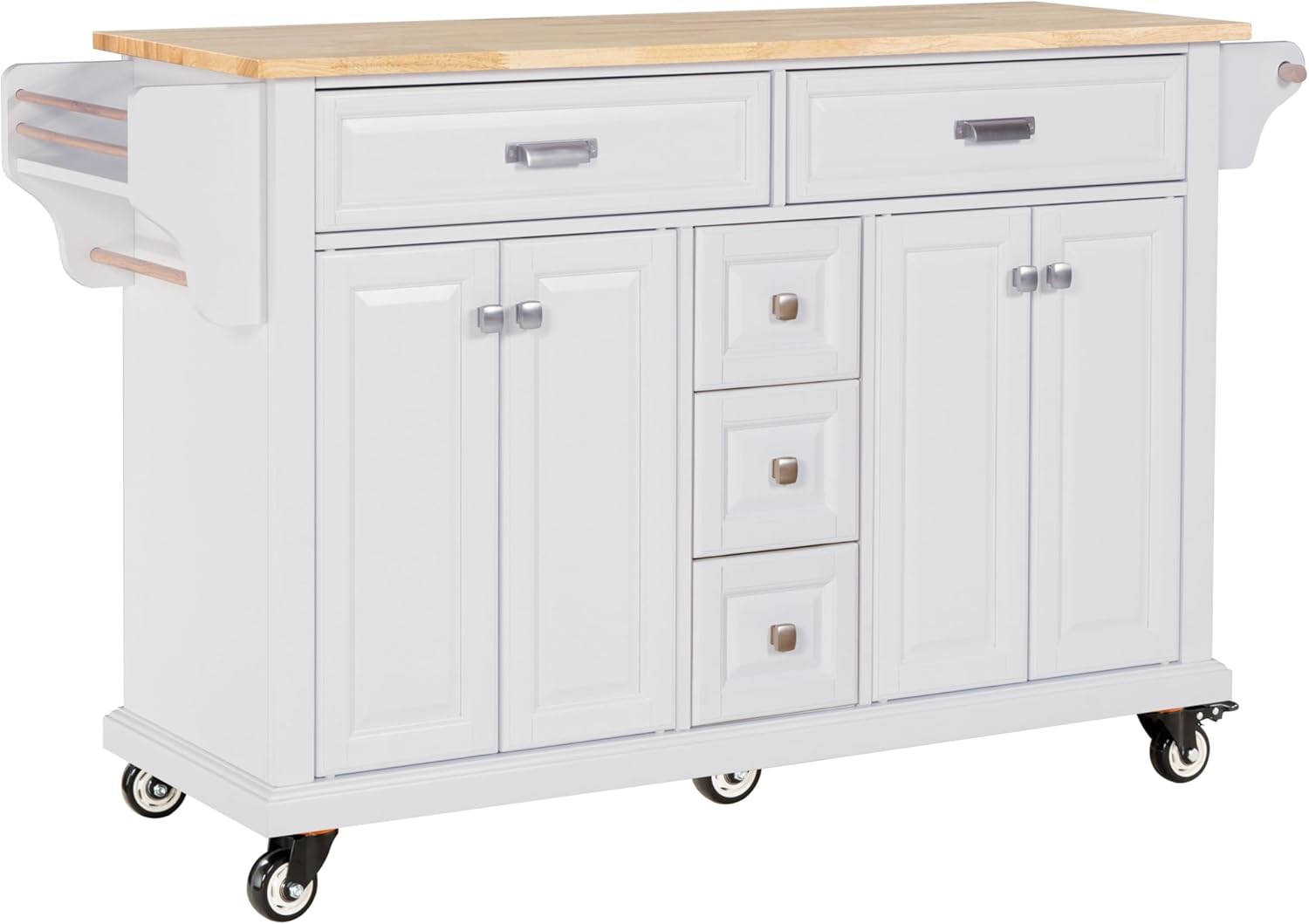 Cambridge Natural Wood Top Kitchen Island with Storage (White) W914S00002