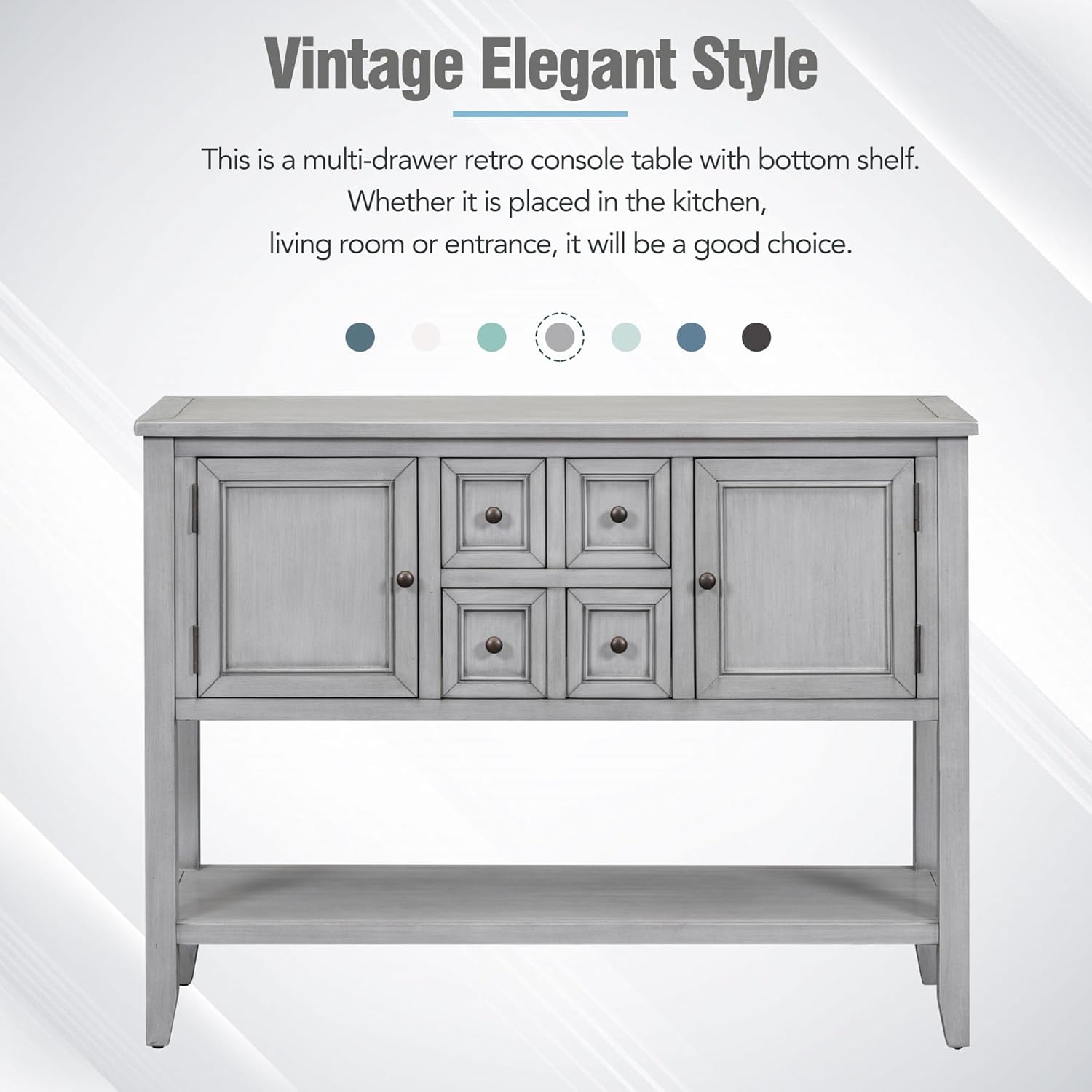 Buffet Sideboard Console Table for Entryway, Cambridge Series Vintage Console Table with Four Small Drawers and Bottom Shelf, Entry Table with Storage Drawers for Living Rooms (Retro Blue)