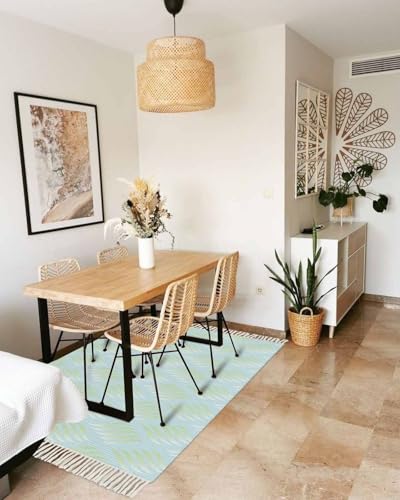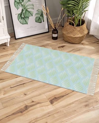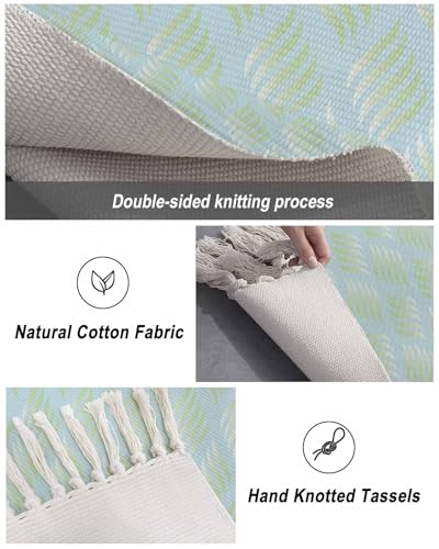 Boho Runner Rug with Tassels 2'x4' Abstract Leaves Lines Geometric Natural Patterns Ombre Green Woven Runners for Hallways Washable Rug Runner Area Rug Floor Carpet for Bedroom Living Room Kitchen