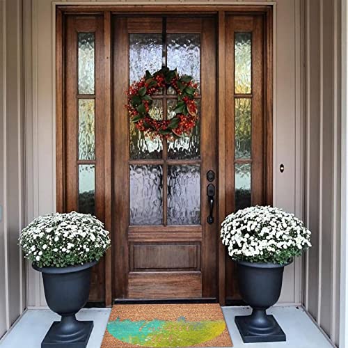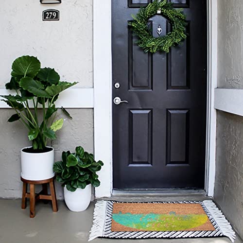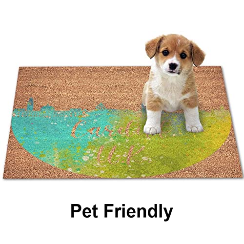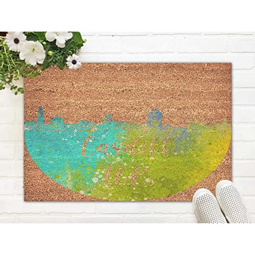 United Kingdom City Cambridge Coir Door Mat Rustic Non Slip Rubber Back Indoor Mat Funny Coir Doormat City Silhouette Watercolor Ink Graffiti Welcome Mats for Outside Porch Entrance 24x36in