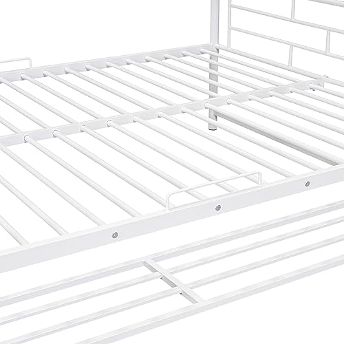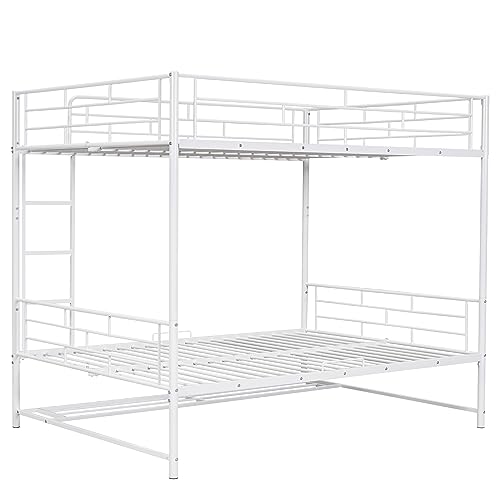 Convertible Full over Full Metal Bunk Bed with Storage Shelf and Safety Guardrails, Full Size Bunk Beds w/Metal Slat Support, Easy Assembly, No Spring Box Needed