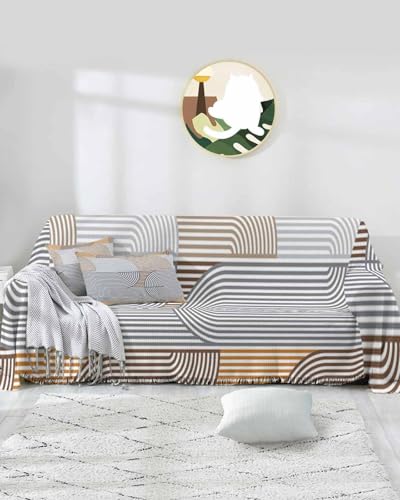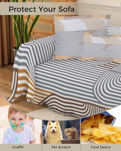 Couch Cover for 3 Cushion Cover, Abstract Leaves Lines Geometric Natural Patterns Ombre Green Washable Sofa Covers with Tassel Sectional Sofa Slipcovers Furniture Protector for Dogs Pets, 71" x 102"