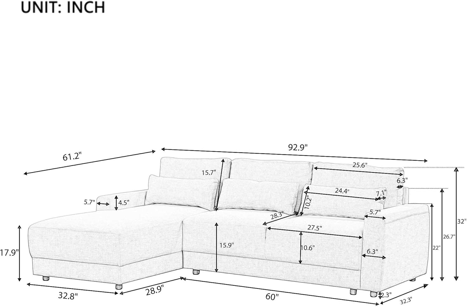 Modular L-Shaped Sofa with Removable Cushions & 3 Pillows - Modern Minimalist Couch for Living Room, Comfortable & Ergonomic Furniture, Durable Construction, Easy Assembly