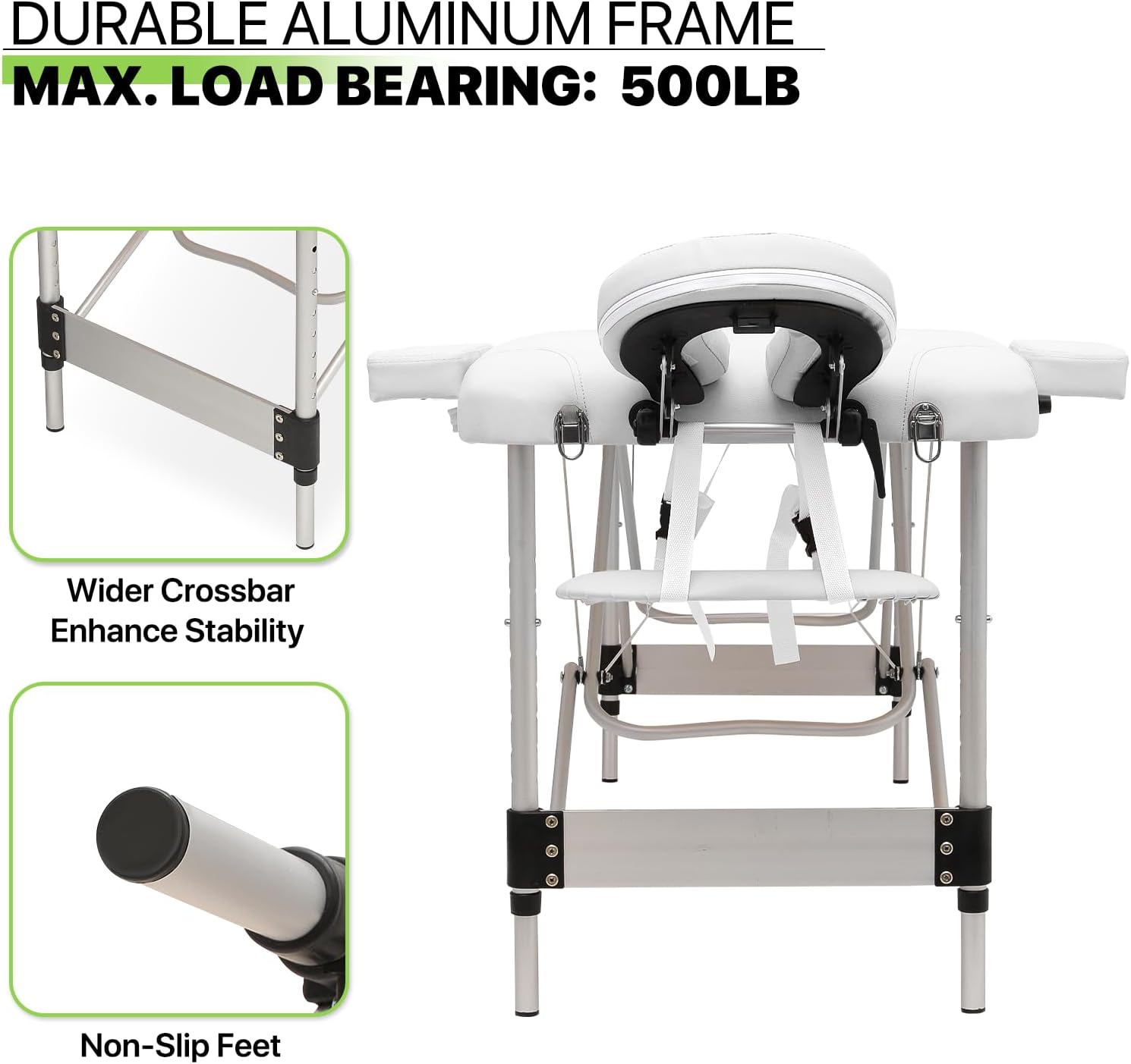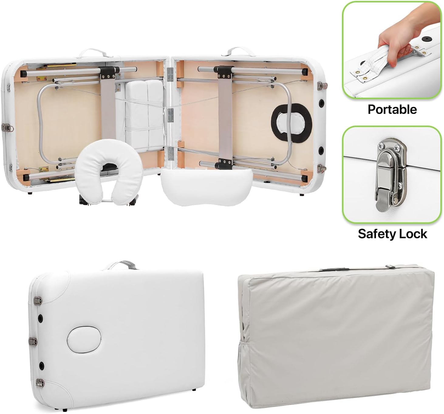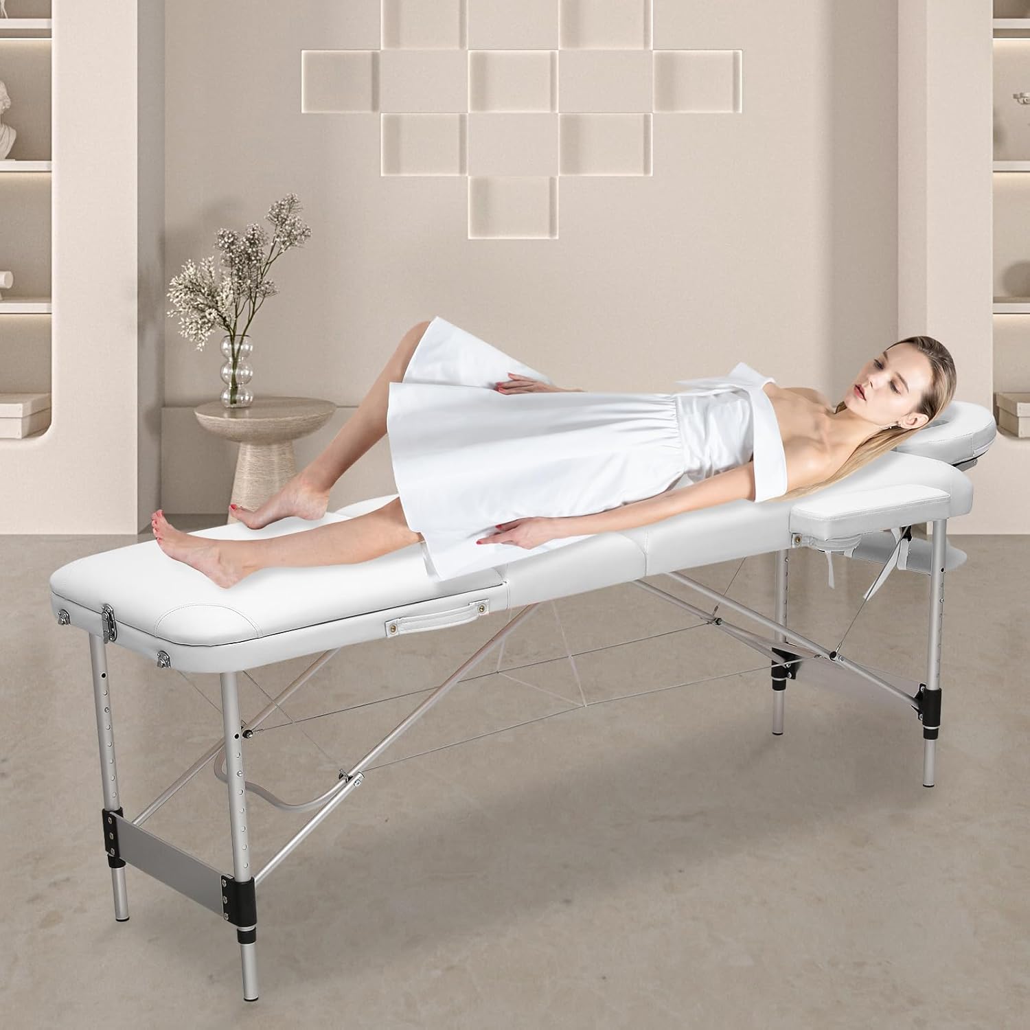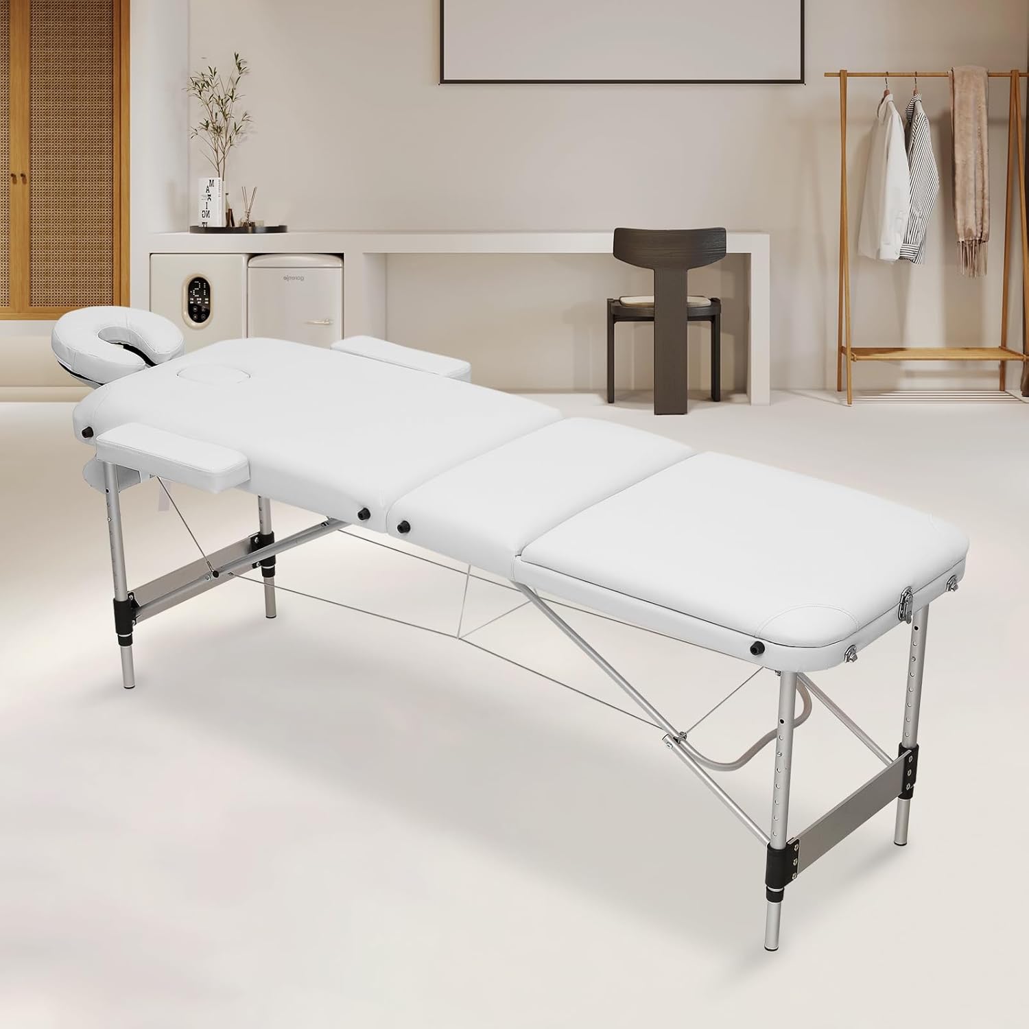 Magshion 82" Massage Table, 3 Folding Portable Massage with Carry Case, Aluminum Alloy Frame Foldable Massage Table, PVC SPA Bed, White