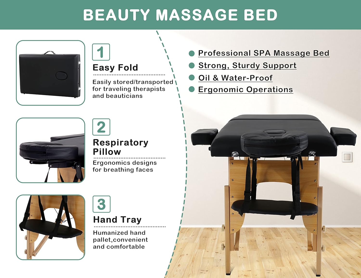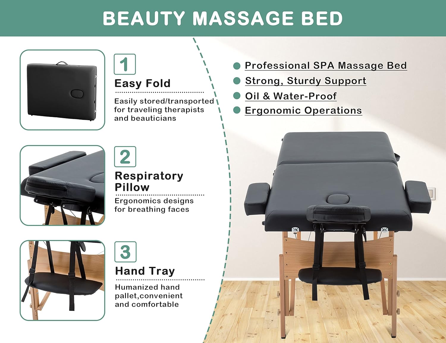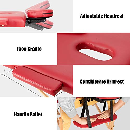 Careboda Massage Table Professional Massge Bed 3 Fold 82 Inches Height Adjustable (Macaron Pink)
