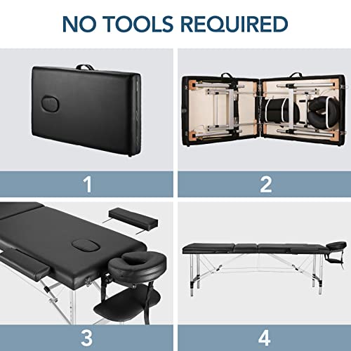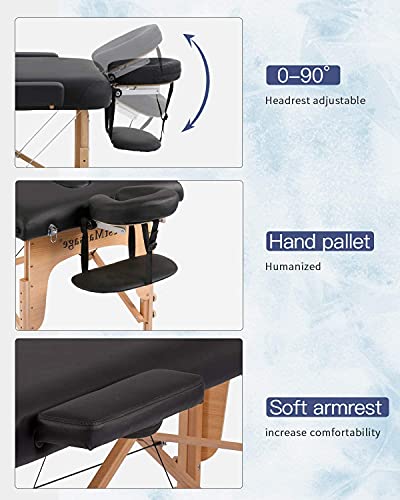 Massage Tables Portable Lash Bed 73 inch Tattoo Table, Height Adjustable Portable Spa Bed, 3 Folding Chiropractic Table w/Carry Case/Face Cradle/Hand Pallet/Towel Hanger/Oil Pouch/Sheet/2 Bolster