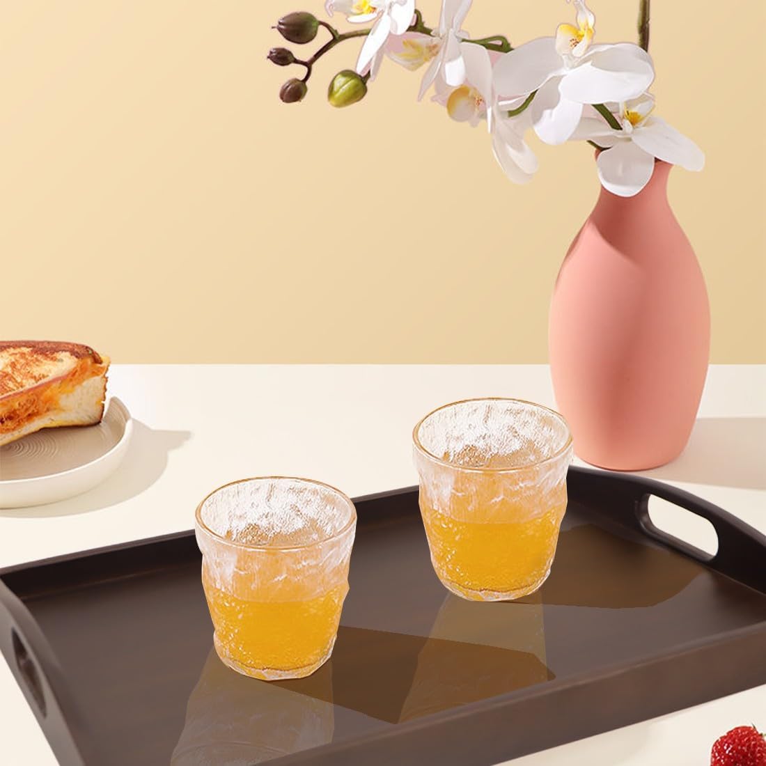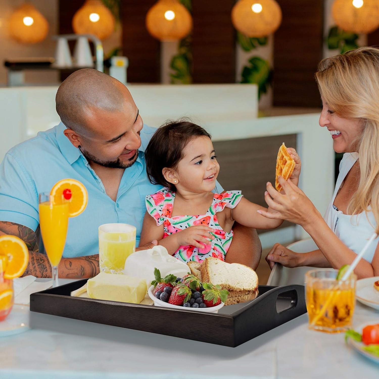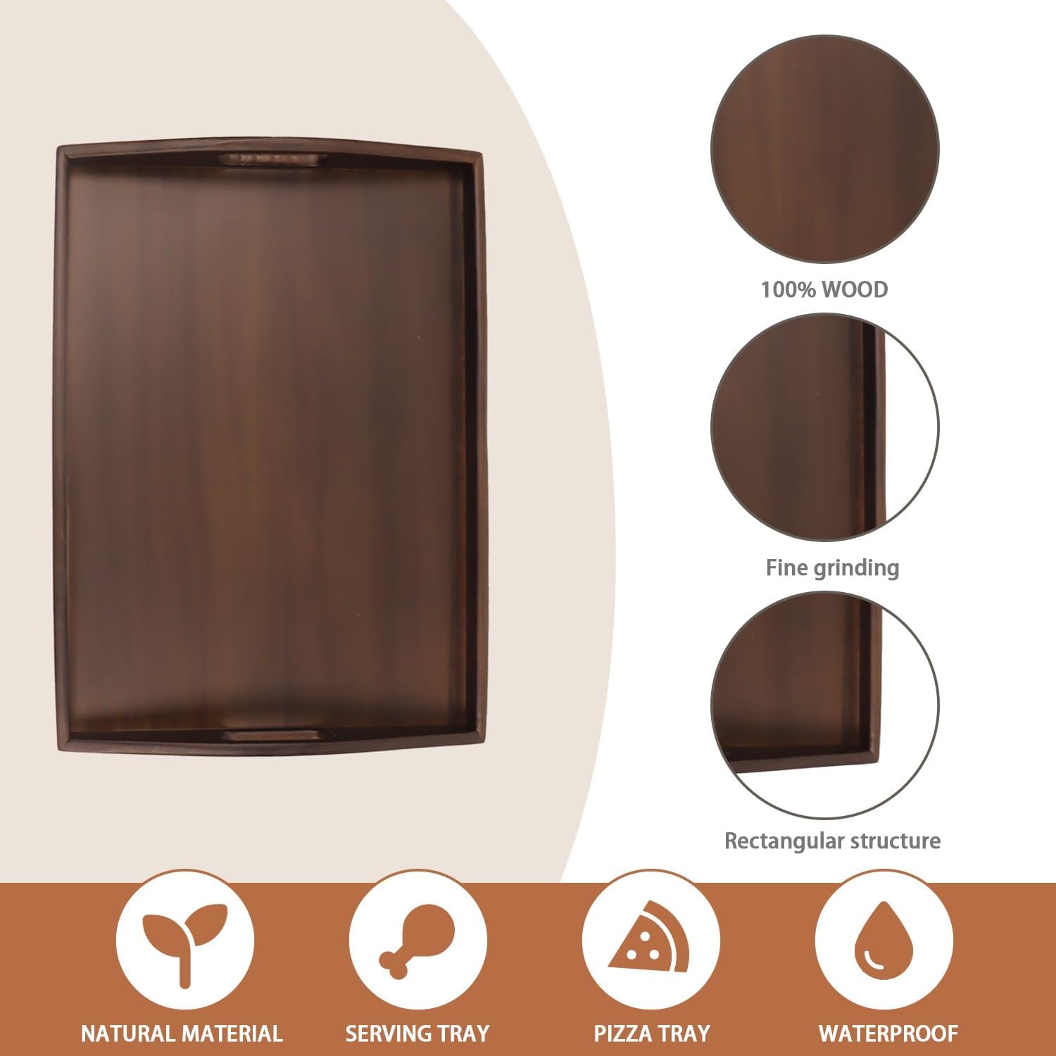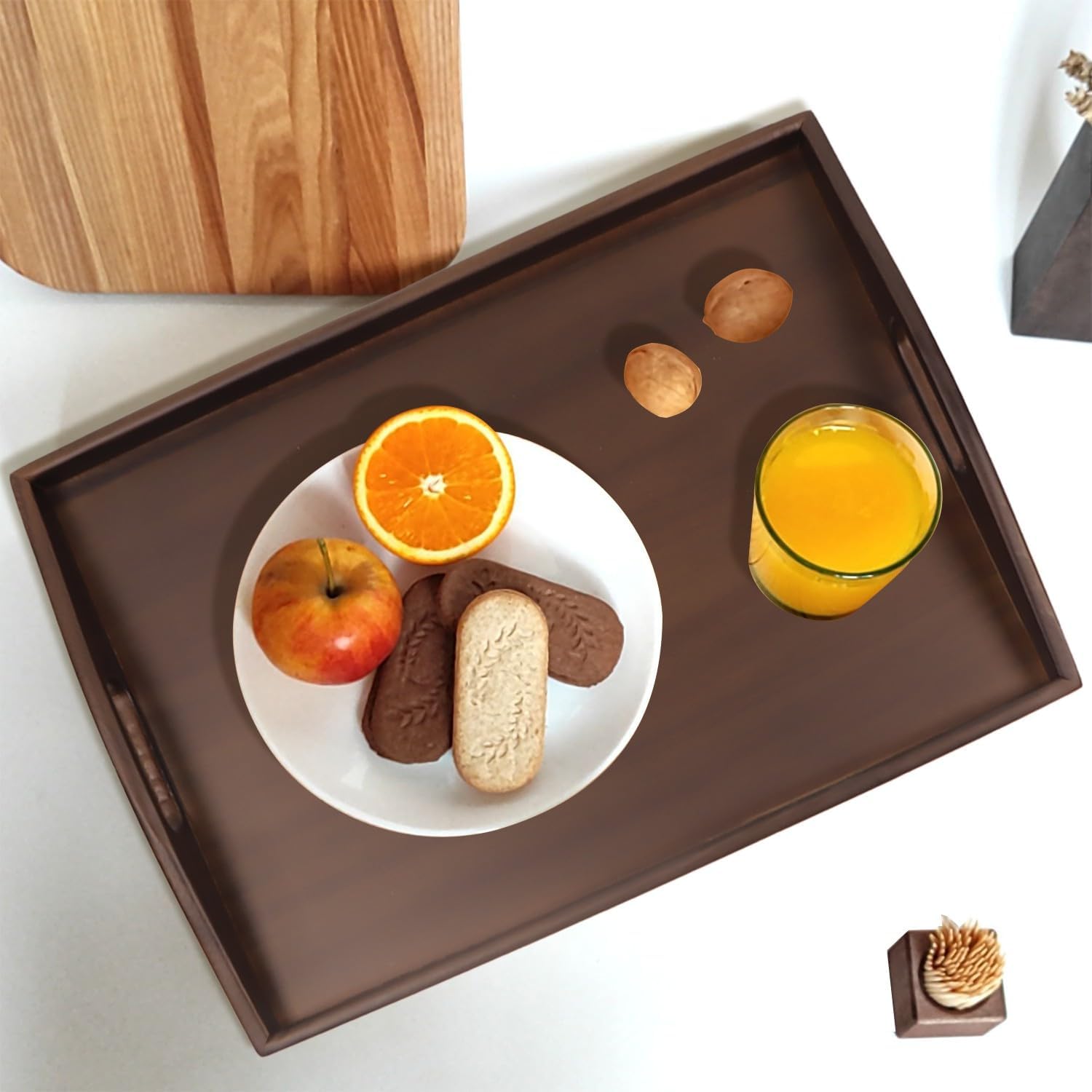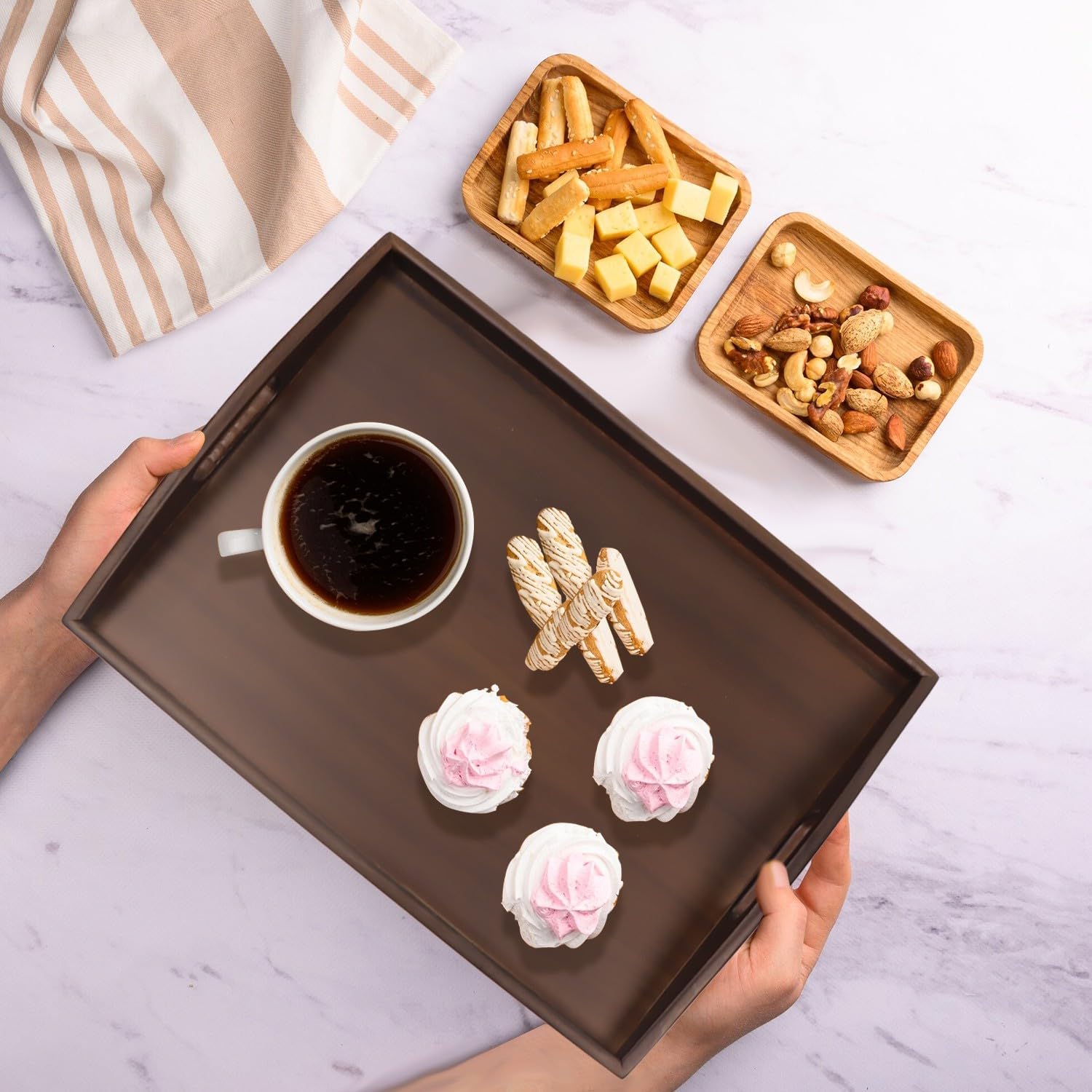 Wood Serving Tray with Handles, Walnut Ottoman Tray, 15x11 inches Wooden Serving Tray Ideal for Living Room Tray for Breakfast Tray Perfect for Party Dessert Display (Set of 2)