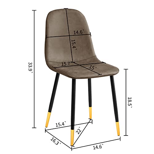 FurnitureR Dining Chairs, Dining Chairs Set of 2, Brown Dining Room Chairs, Modern Kitchen & Dining Room Chairs, Faux Leather Upholstered Kitchen Chairs with Black Gold Metal Legs