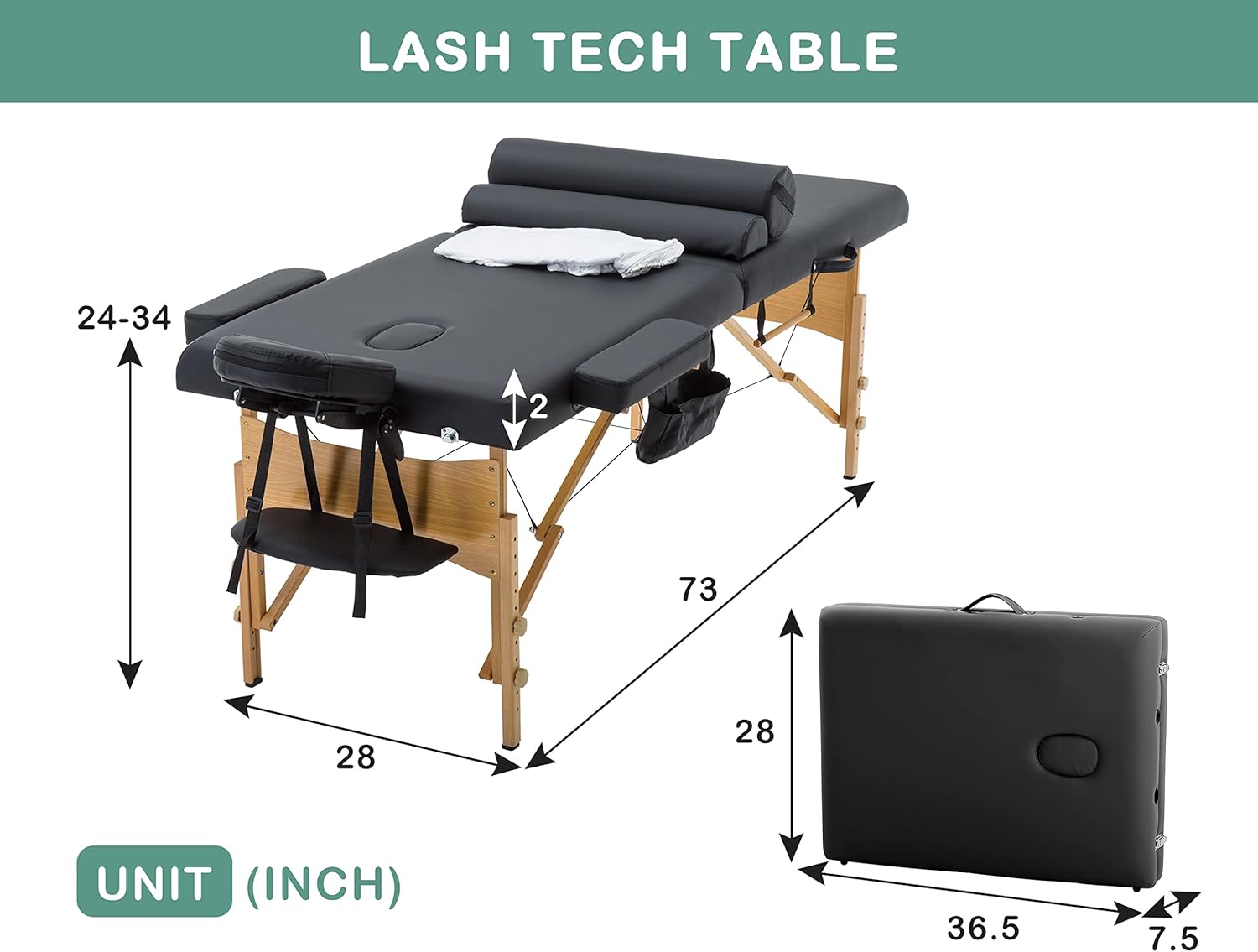 Massage Tables Portable Lash Bed 73 inch Tattoo Table, Height Adjustable Portable Spa Bed, 2 Folding Chiropractic Table w/Carry Case/Face Cradle/Hand Pallet/Towel Hanger/Oil Pouch/Sheet/2 Bolster