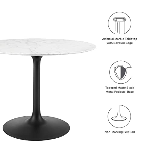 Modway Lippa 36" Round Wood Dining Table, White Top, Black Base