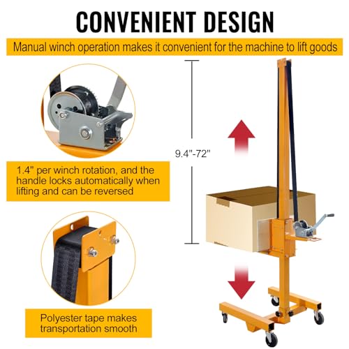 Material Lift Winch Stacker 441 Lbs 72” Max Lift, Pallet Truck Dolly Lift Table Fork Lift,Cabinet Lift