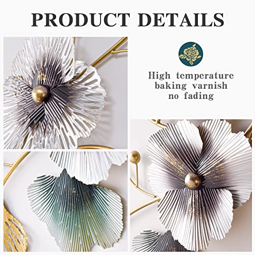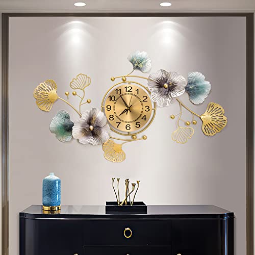 Large Wall Clock for Living Room Decor,3D Gold Metal Ginkgo Leaf Wall Clock,35.8 Inch Modern Luxury Art Design Clock for Bedroom, Office,Home