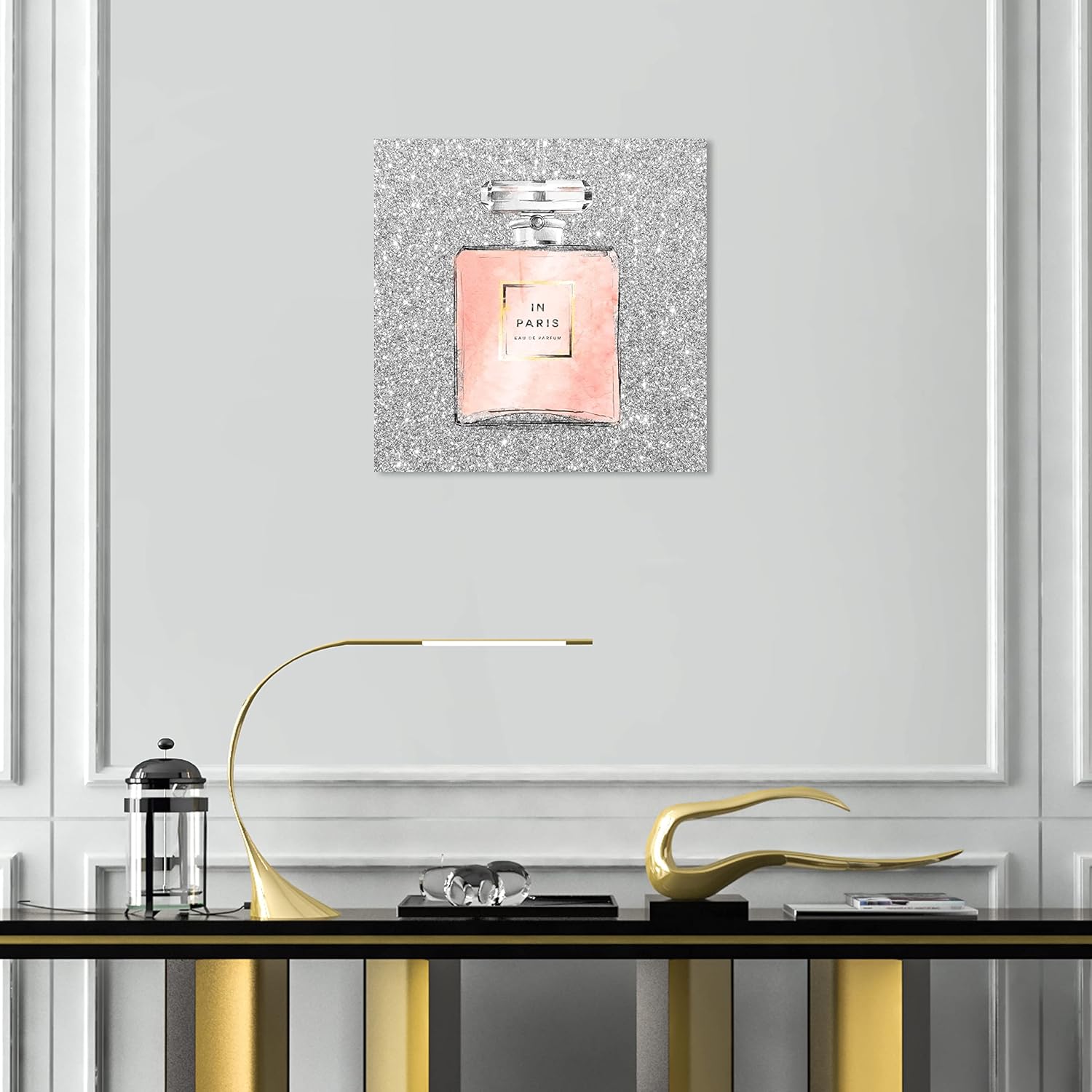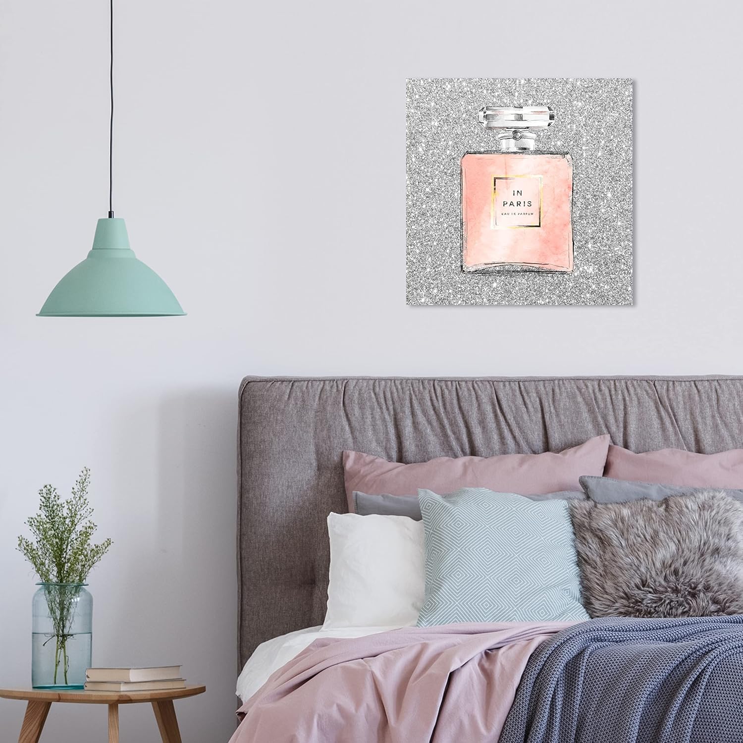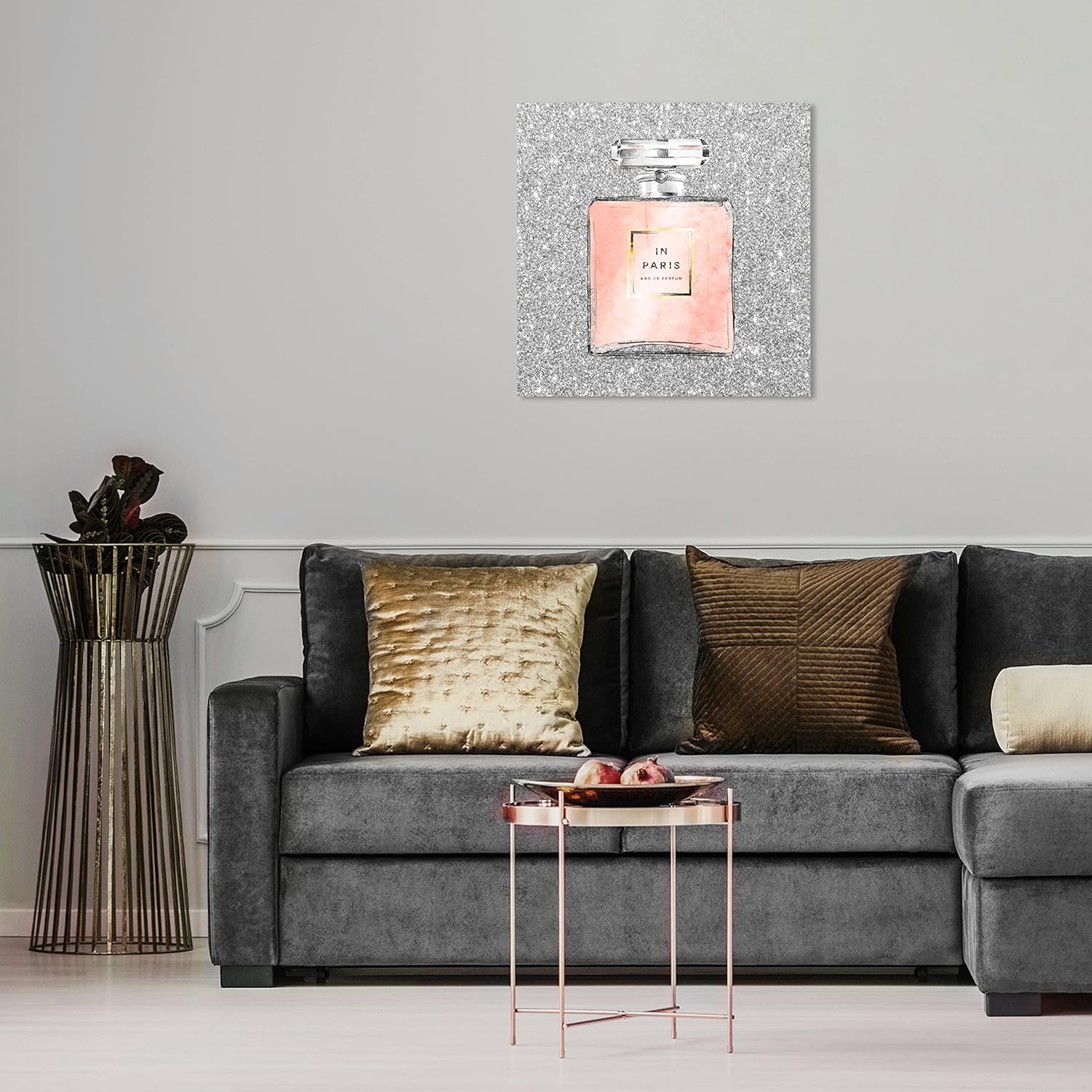 The Oliver Gal Artist Co. Fashion and Glam Wall Art Canvas Prints 'Paris Glitter Spring' Perfumes Home Décor, 16" x 16", Gray, Pink