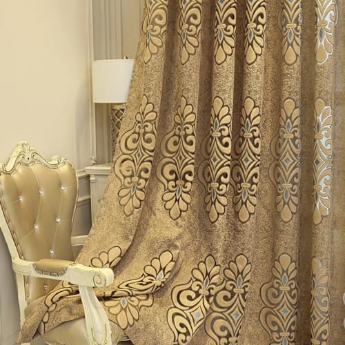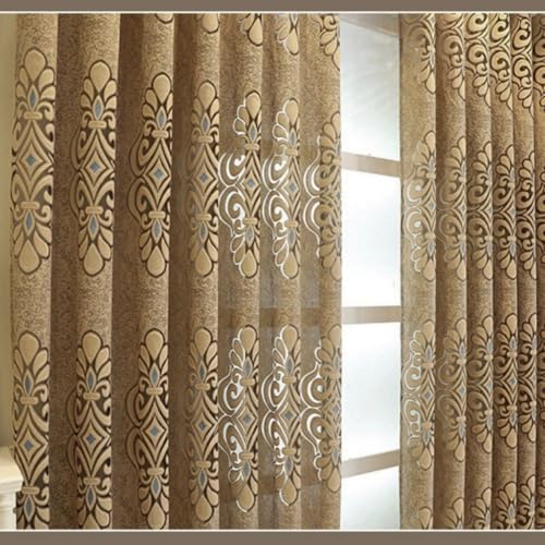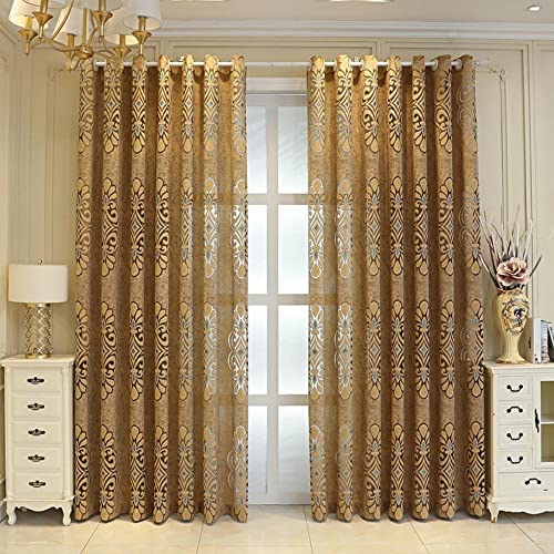 Amidoudou 1 Pair European Jacquard Tulle Curtains Classical Elegant Sheer Curtains for Bedroom Living Room (Coffee,52x96 Inch)