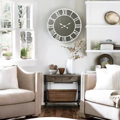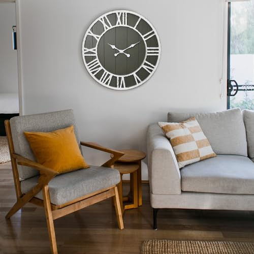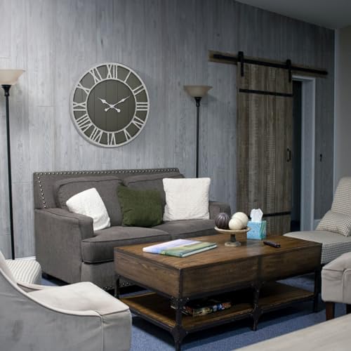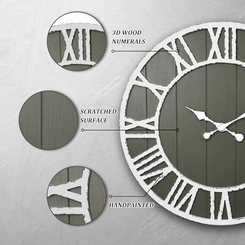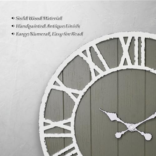Large Farmhouse Wall Clock, 24" Rustic Wooden Wall Clock for Living Room Decor, Vintage Roman Numerals Clock Decor for Home, Battery Operated Silent Wall Clock (Gray-Green, White)